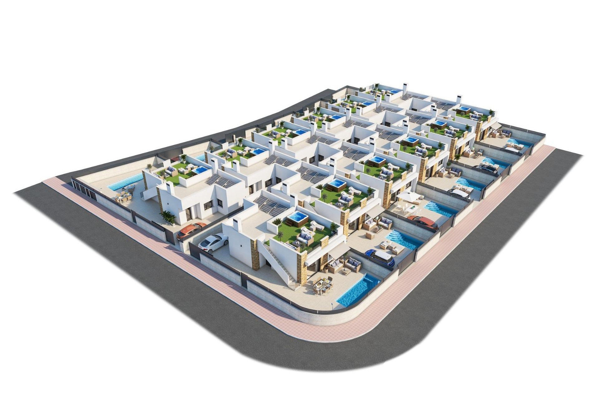 NEW BUILD VILLAS IN ROJALES New Build 12 Detached Villas in Rojales. Modern villas build over 1 level, have 3 bedrooms, 2 bathrooms, open plan kitchen with living room, solarium, private garden with the pool and parking space. Include: Photovoltaic Energy. Hot-Cold Air Conditioning. Interior and Exterior Lighting. Furnished kitchen with extractor hood and osmosis included. Aluminium Electric Blinds. Built-in Wardrobes in Bedrooms. Furnished Bathrooms and Glass Shower Screens. Fiber Optic in each room and living room. Private pool. Off Road Parking. Villas located in Rojales, a privileged and quiet area next to the Laguna de La Mata Natural Park and just 5 kilometres from the best beaches on the Costa Blanca. In the area, there is an extensive sports and commercial offer: Hotels, Shopping Centre’s, Restaurants, 2 Water Parks, 8 18-hole Golf Courses, Horse Riding, Tennis Courts, etc... Access to the AP-7 motorway is less than 2 km away and the Alicante and Murcia airports are less than 30 minutes away.