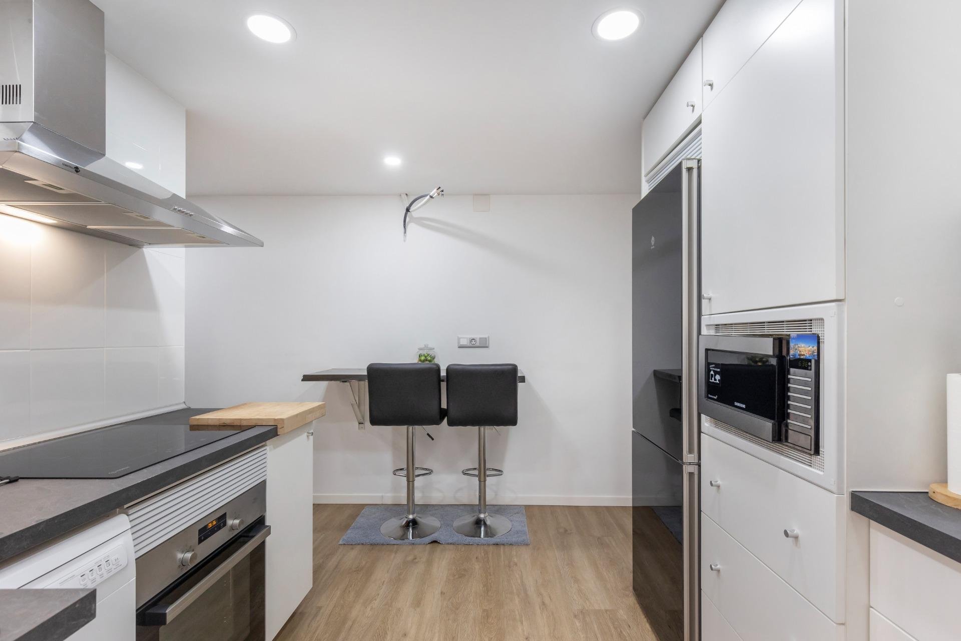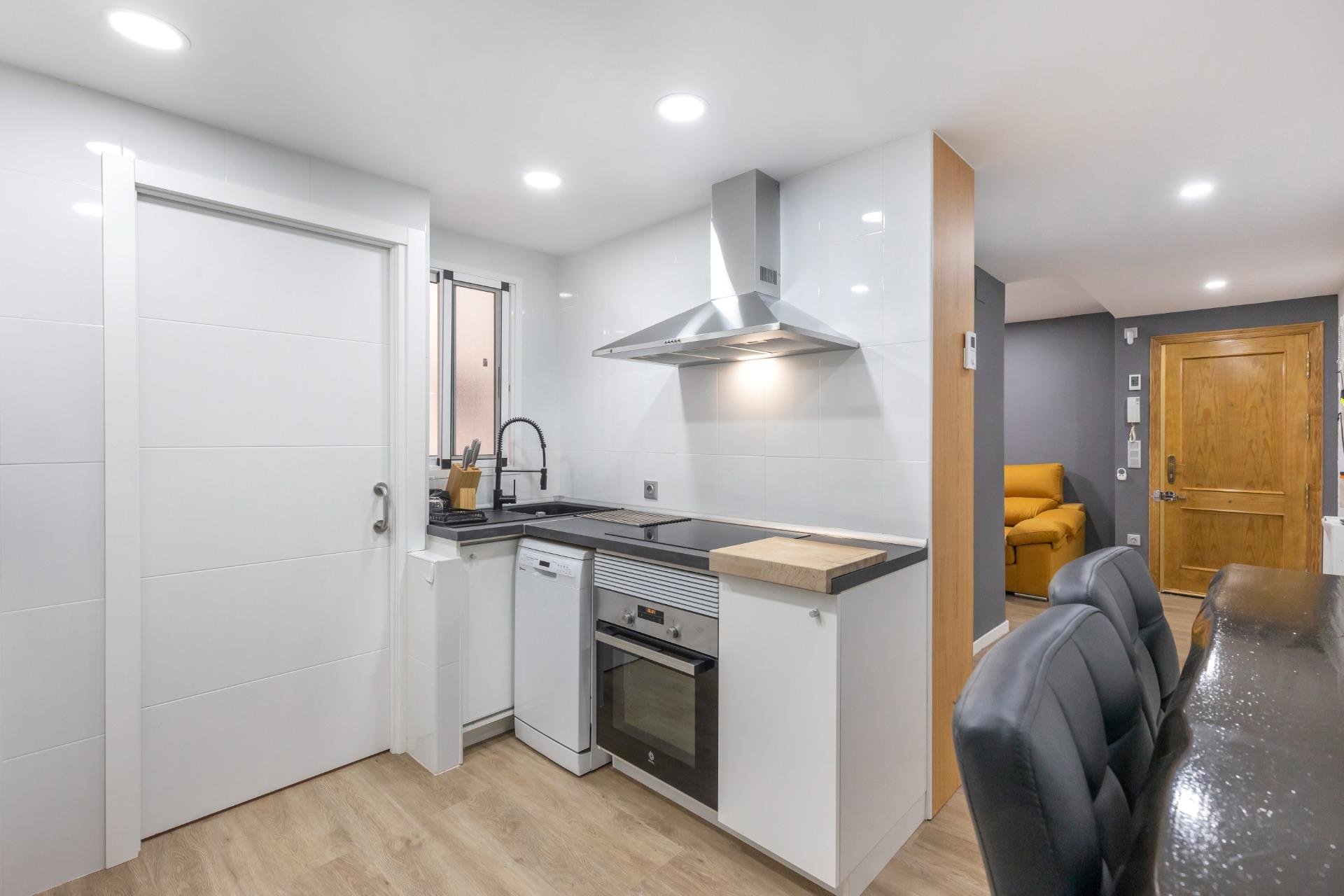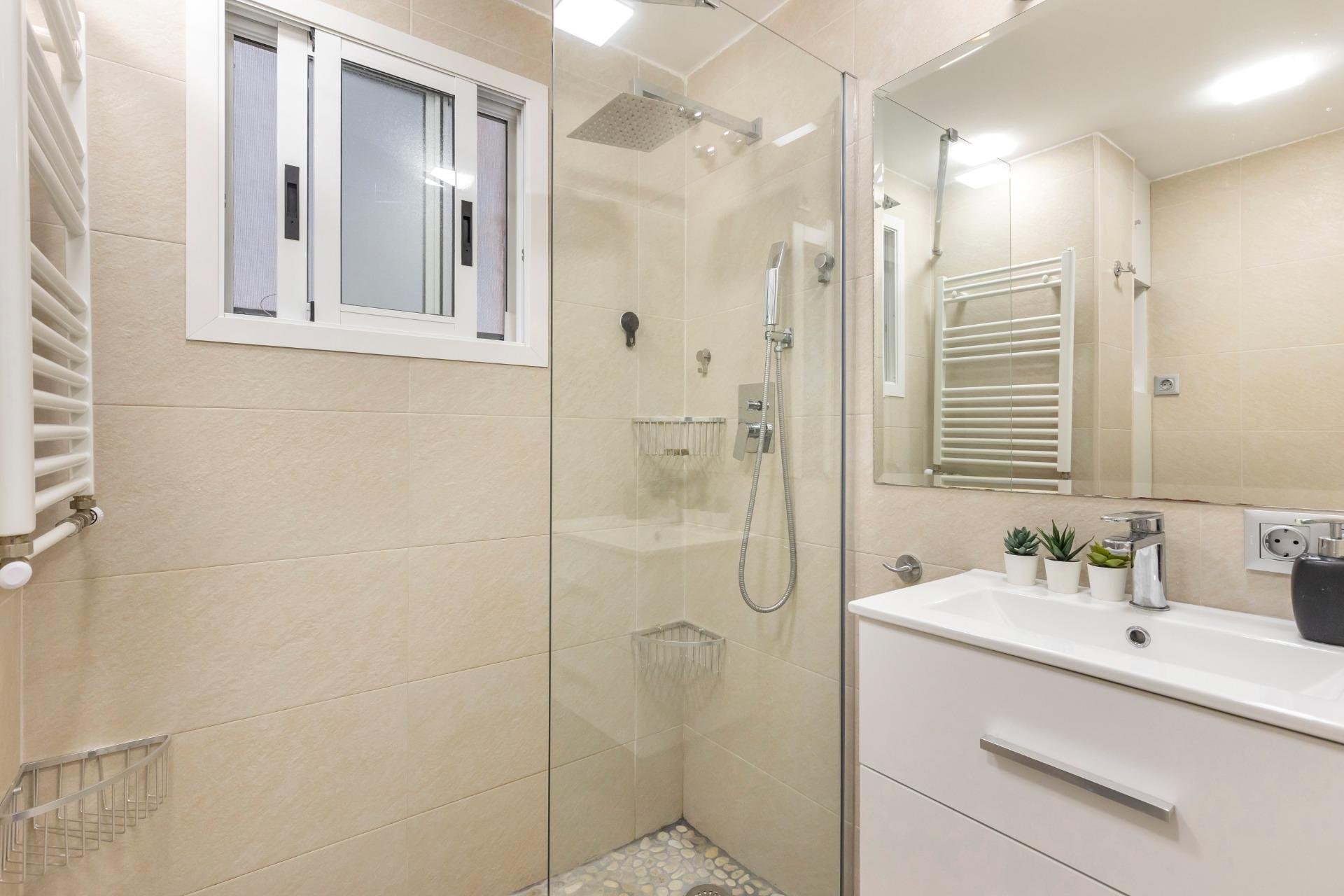 It is a pleasure to be able to present you this gem of an apartment in the Park of Nations area in Torrevieja.~~This apartment is completely renovated with a daring and innovative distribution of spaces.~It consists of 59 square meters that are distributed in:~- a spectacular exterior bedroom with a 2x2.20m bed with a hybrid mattress, a window along the entire side, a desk and fabulous L-shaped closets.~- living room with all comforts (sofa, TV, bar cabinet, shoe rack)~- a fully equipped and renovated bathroom with a shower tray.~- kitchen equipped with all kinds of new appliances.~- gallery with washing machine, dryer~~Other features of this apartment are: laminate flooring, smooth walls, low consumption lights, plasterboard walls and ceiling and pre-installation of air conditioning.~~Also forget about looking for parking at any time of the year because a parking space and a storage room are included in the price!!!~~Do not hesitate to contact us to visit this wonderful property