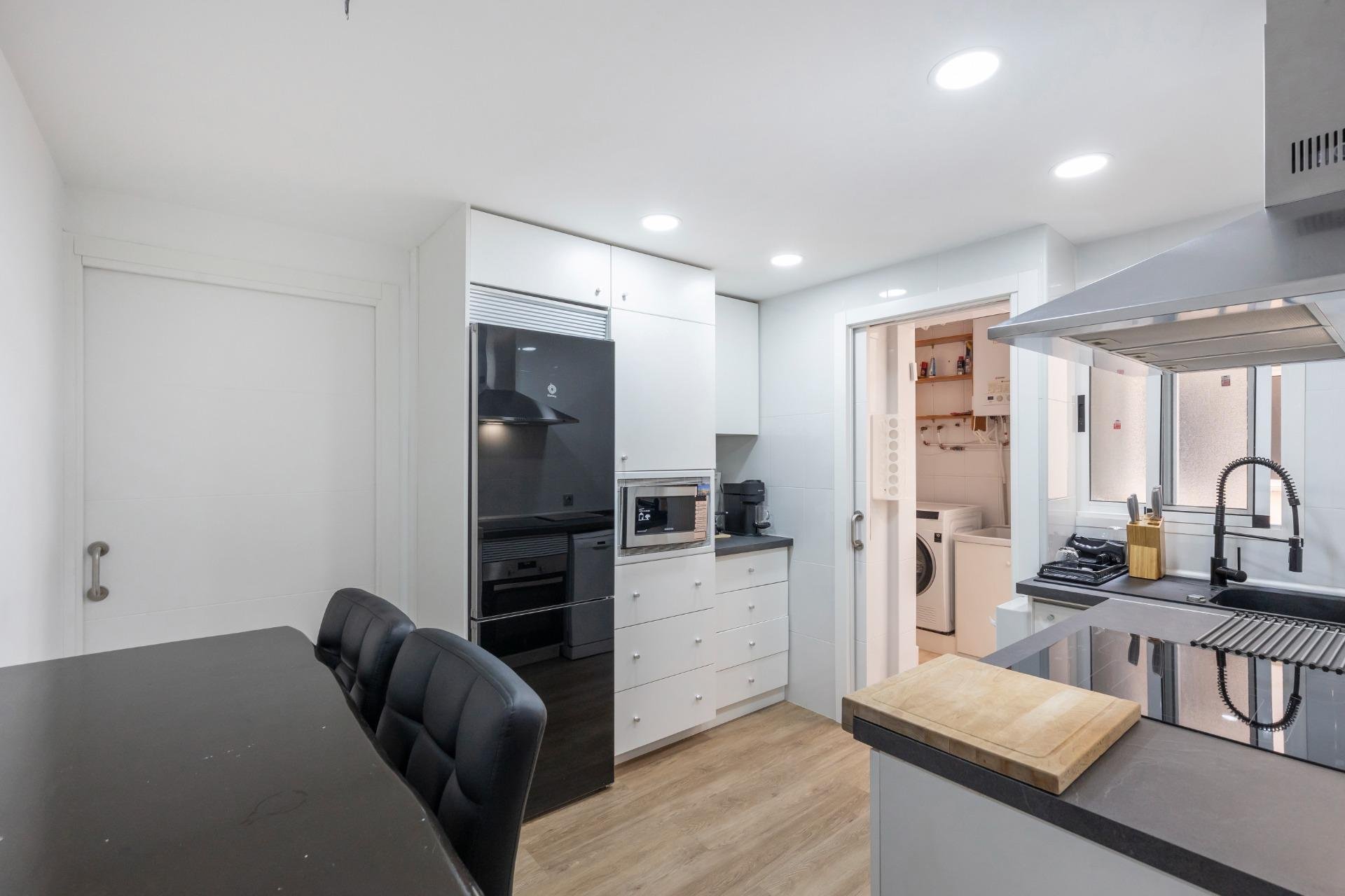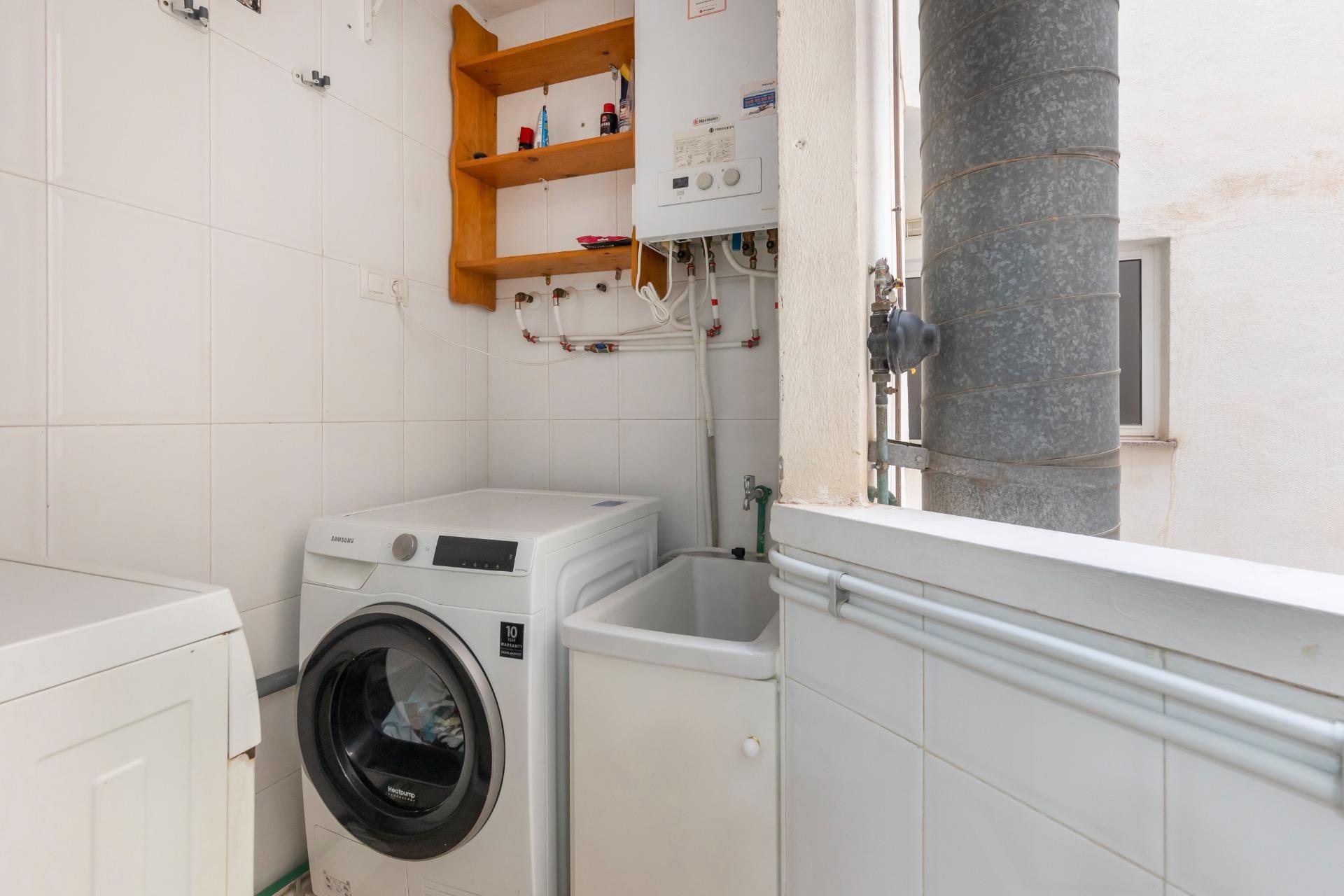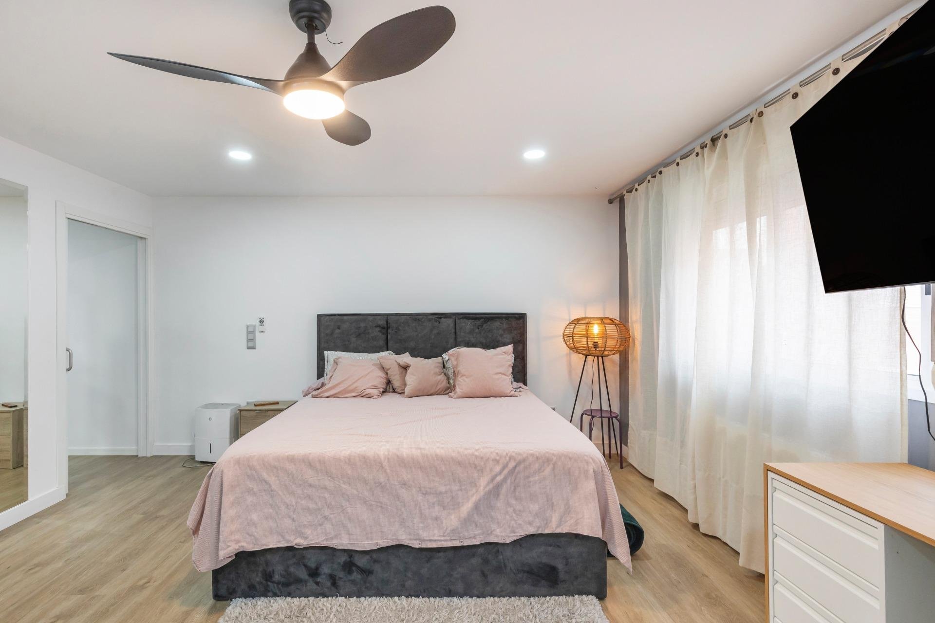 It is a pleasure to be able to present you this gem of an apartment in the Park of Nations area in Torrevieja.~~This apartment is completely renovated with a daring and innovative distribution of spaces.~It consists of 59 square meters that are distributed in:~- a spectacular exterior bedroom with a 2x2.20m bed with a hybrid mattress, a window along the entire side, a desk and fabulous L-shaped closets.~- living room with all comforts (sofa, TV, bar cabinet, shoe rack)~- a fully equipped and renovated bathroom with a shower tray.~- kitchen equipped with all kinds of new appliances.~- gallery with washing machine, dryer~~Other features of this apartment are: laminate flooring, smooth walls, low consumption lights, plasterboard walls and ceiling and pre-installation of air conditioning.~~Also forget about looking for parking at any time of the year because a parking space and a storage room are included in the price!!!~~Do not hesitate to contact us to visit this wonderful property
