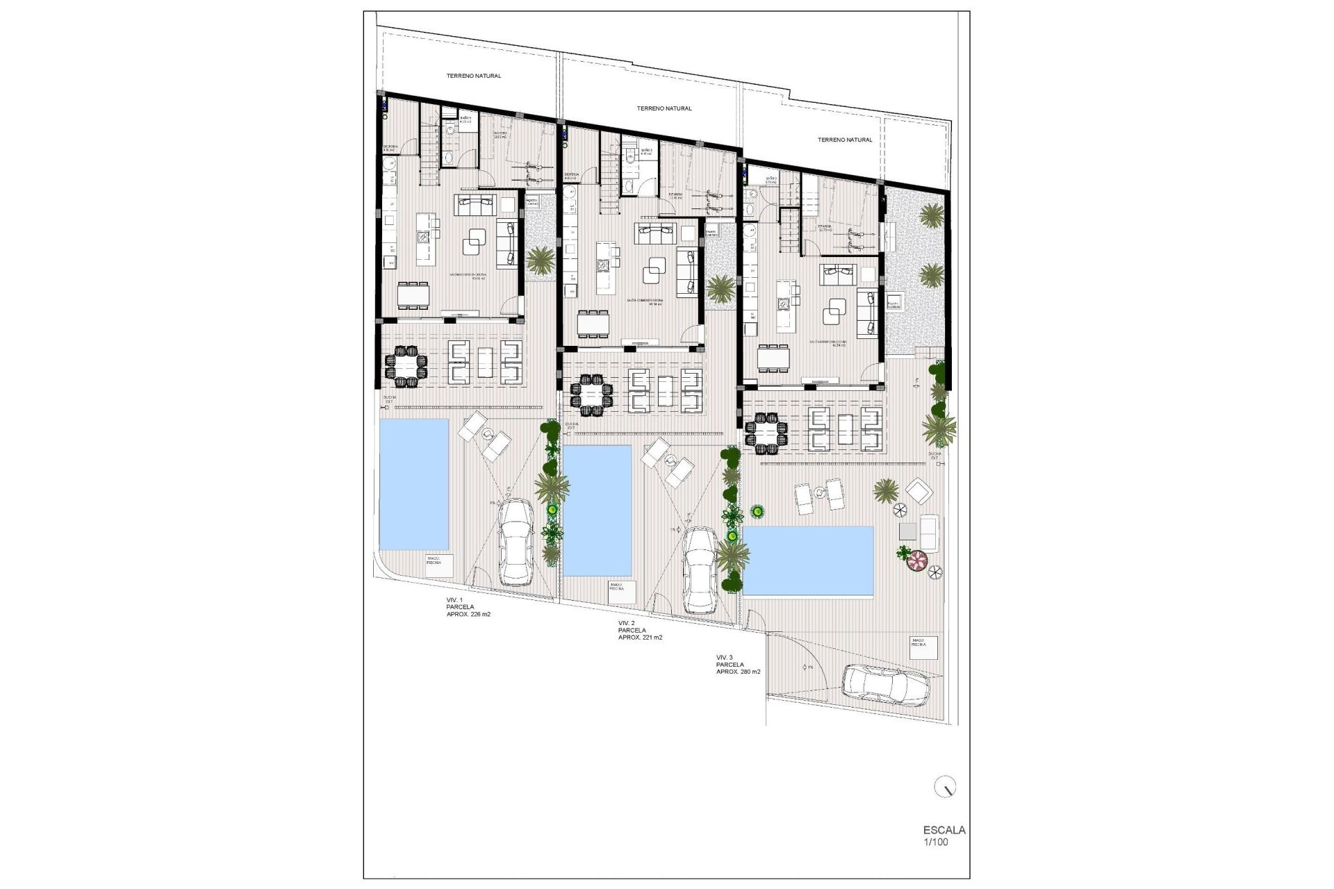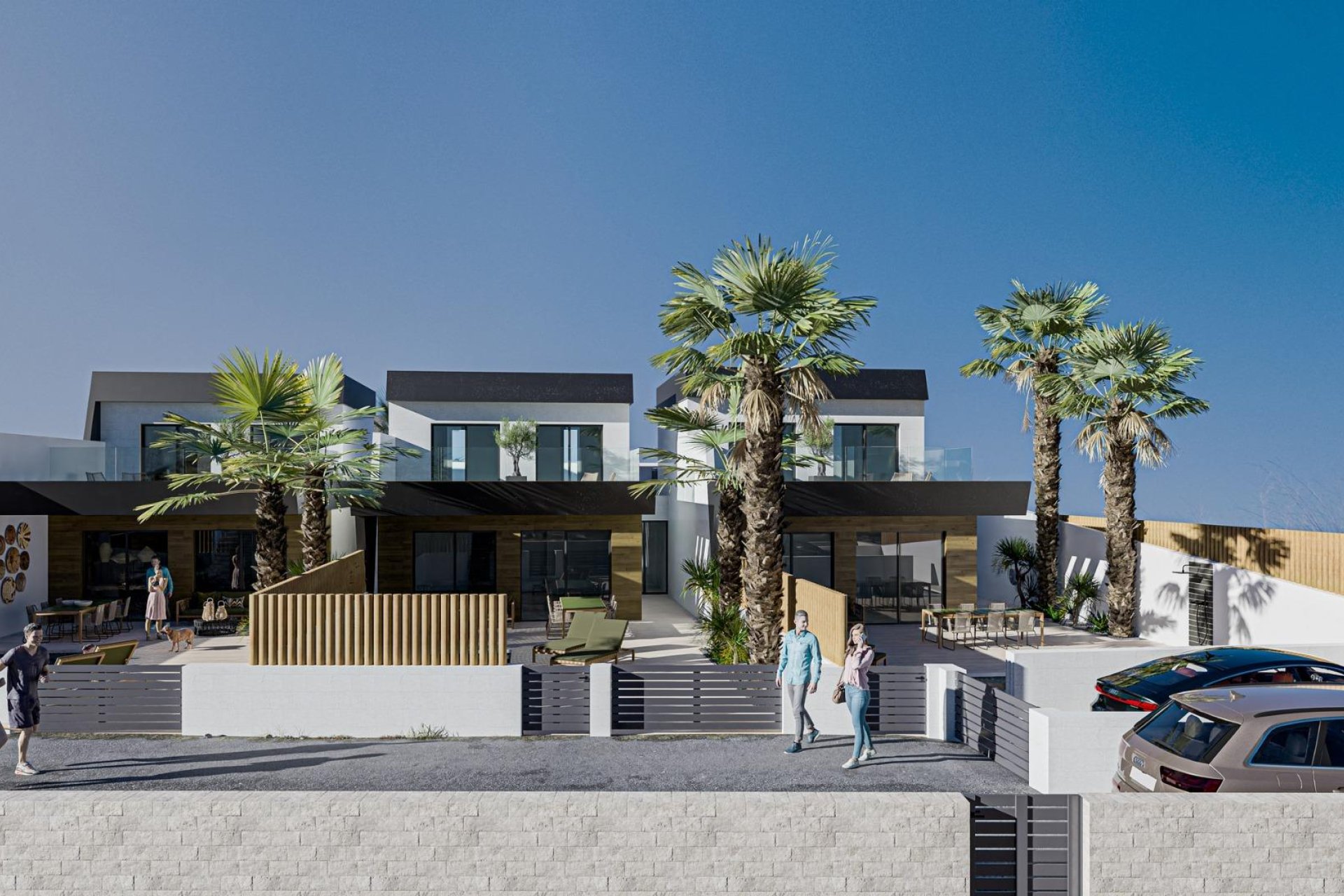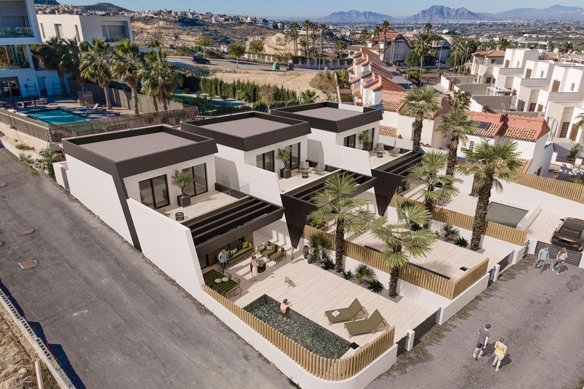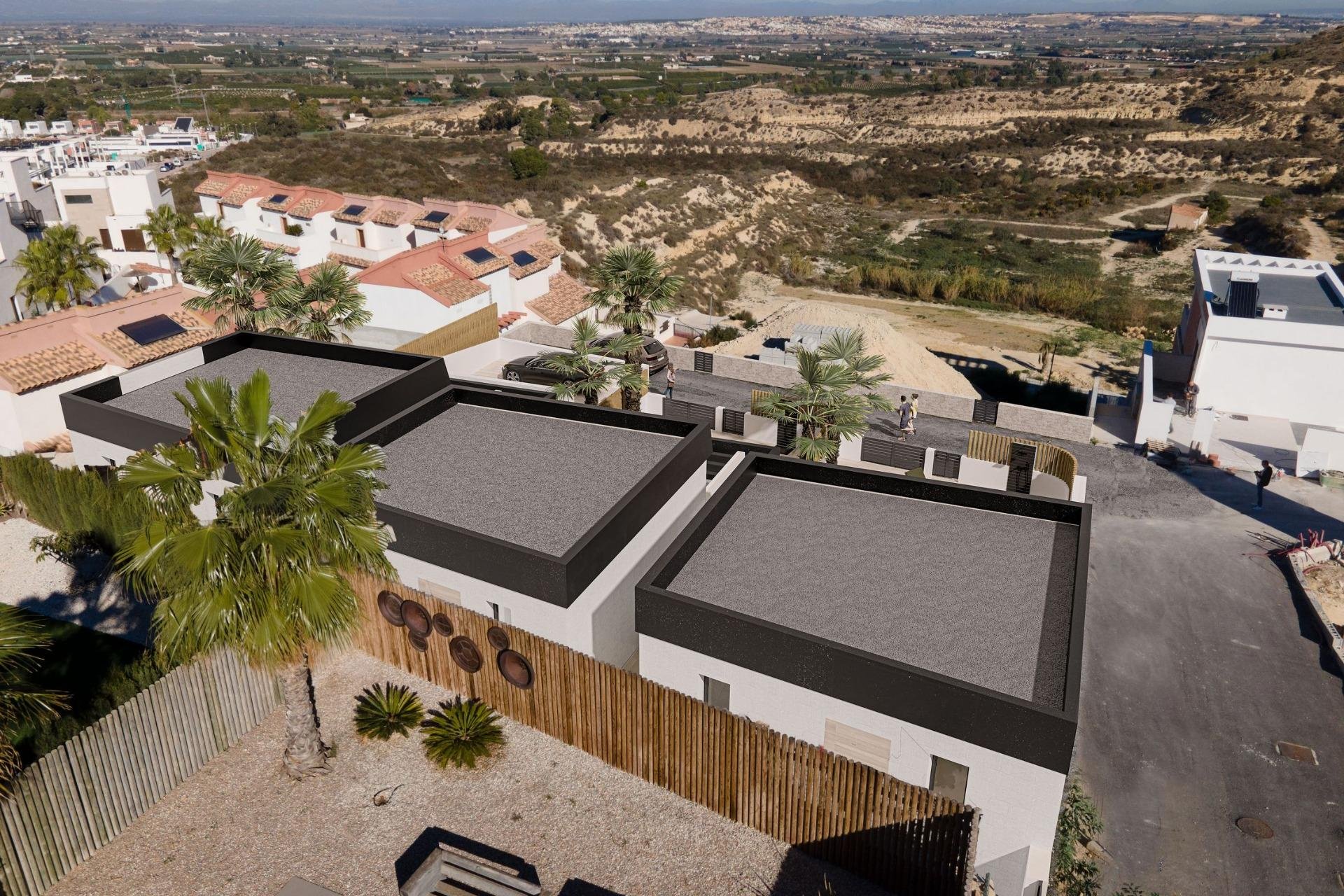 NEW BUILD TOWNHOUSES IN ROJALES New Build residential complex of 3 townhouses with panoramic and incredible views of the entire Costa Blanca and the East. Modern townhouses with 3 bedrooms, 3 bathrooms, open plan kitchen, living room with direct access to the terrace with private pool, terraces, parking space. The kitchen will be equipped with lacquered wall and base units, with a modern combination of colours and a top-quality worktop in top quality porcelain tile. The rest of the room will be finished with smooth plastic paint. Stainless steel sink with single lever faucet mixer included Ceramic hob, Built-in oven, Extractor hood. Armoured door with security lock and anti-leverage hinges anti-lever hinges. White lacquered interior doors with black handles. Built-in closets with doors to match the carpentry, lined inside and with mezzanine and hanging rail. Each home will have its own pedestrian and vehicular access. The portal will be finished with high quality materials, combined to highlight its aesthetics and welcome you in the warmest and most welcoming way. There a 3 golf courses nearby and the blue flag beaches are just a short 10 minute drive away. Rojales it is a lovely village with all services such as supermarkets, pharmacies, banks, restaurants and natural park located very close to the villas. There are several golf courses close by as well as water parks in nearby Rojales and Torrevieja. Alicante & Murcia airports are 45 minutes drive away.