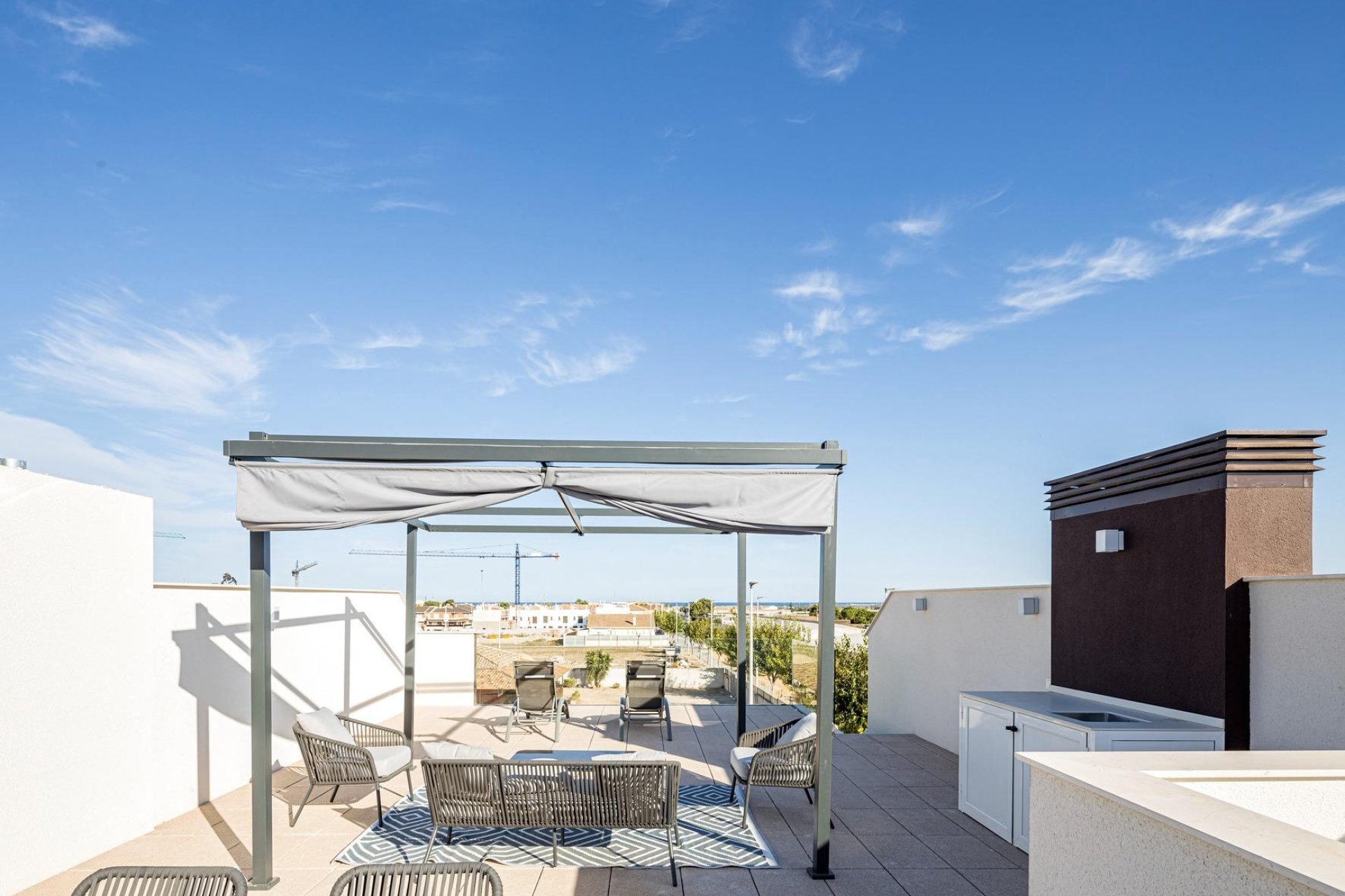 NOUVELLE CONSTRUCTION RÉSIDENTIELLE D'APPARTEMENTS DE PLAIN-PIED À PILAR DE LA HORADADA Nouvelle construction d'un complexe résidentiel exclusif composé de 22 appartements de plain-pied de qualité supérieure avec des finitions PORCELANOSA à Pilar de la Horadada. Des bungalows modernes de 2 chambres, 2 salles de bains, cuisine ouverte sur le salon, armoires encastrées. Les maisons du rez-de-chaussée disposent d'un grand jardin en gazon artificiel et au dernier étage, vous pourrez profiter du soleil toute l'année sur la terrasse et le solarium, ainsi que de la zone commune avec piscine et d'une place de parking pratique. Pilar de la Horadada est un village espagnol typique situé dans la partie la plus méridionale de la Costa Blanca. La grande rue principale abrite des supermarchés, de nombreux magasins, des restaurants et des bars, ainsi que de jolies places. Les belles plages de Torre de la Horadada et de Mil Palmeras, avec leur promenade de sable fin, ne sont qu'à 5 minutes. Les aéroports de Corvera (Murcia) et d'Alicante sont respectivement à 40 et 55 minutes.
