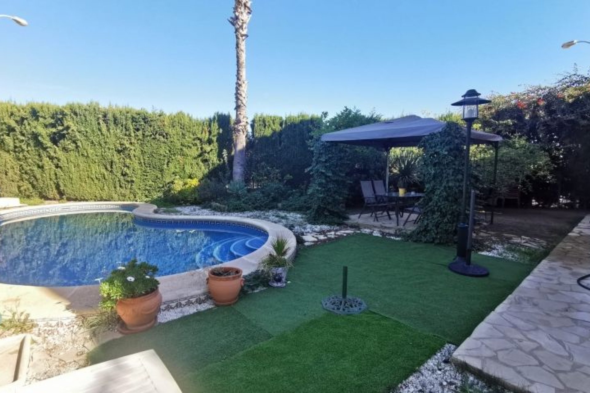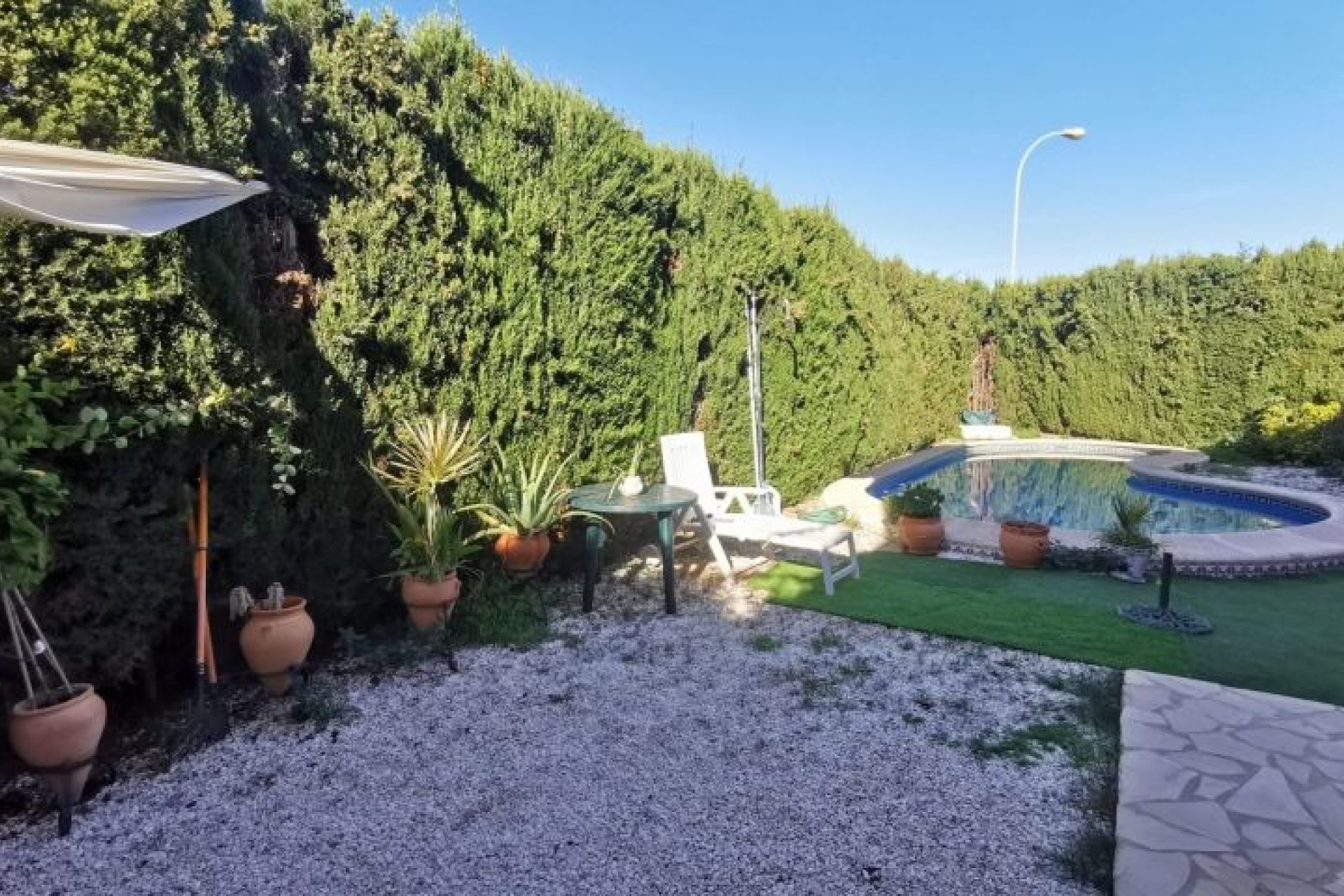 Belle villa individuelle à proximité des meilleures plages d'Orihuela Costa à environ 2 km et des terrains de golf situés à Playa Flamenca en face du centre sportif, avec 4 chambres et 2 salles de bain avec sa piscine privée. Villa d'angle, espace pour garer la voiture, dispose d'un jardin privé de 300m² avec ses différents espaces pour différentes occasions comme l'espace petit-déjeuner, la salle à manger, l'espace bien-être, il y a un autre espace pour se rassembler et dîner, détente, barbecue, bains de soleil au bord de la piscine . La maison dispose du chauffage central à l'électricité mais très économique, de la climatisation dans presque toutes les pièces. En arrivant à l'entrée principale, nous trouverons une belle terrasse avec un auvent pour profiter du soleil ou s'asseoir à l'ombre. En entrant dans la propriété, nous pouvons trouver un spacieux salon/salle à manger avec une cuisine. Sur la droite, nous pouvons trouver 1 des salles de bains et 2 chambres. Au deuxième étage, 2 autres chambres, une salle de bain complète et une grande et spacieuse terrasse orientée plein sud avec vue sur l'horizon, orientée vers la mer pour profiter du soleil.Infrastructure idéale, à proximité du centre sportif, de la maternelle, des écoles, de l'institut, des bars, des restaurants, du centre commercial Zenia Boulevard. Les samedis sont des jours de marché où vous pouvez acheter des fruits et légumes au poulet fraîchement cuit, des paellas et des tortillas, des vêtements et des chaussures et bien plus encore...Très bon endroit pour vivre toute l'année.
