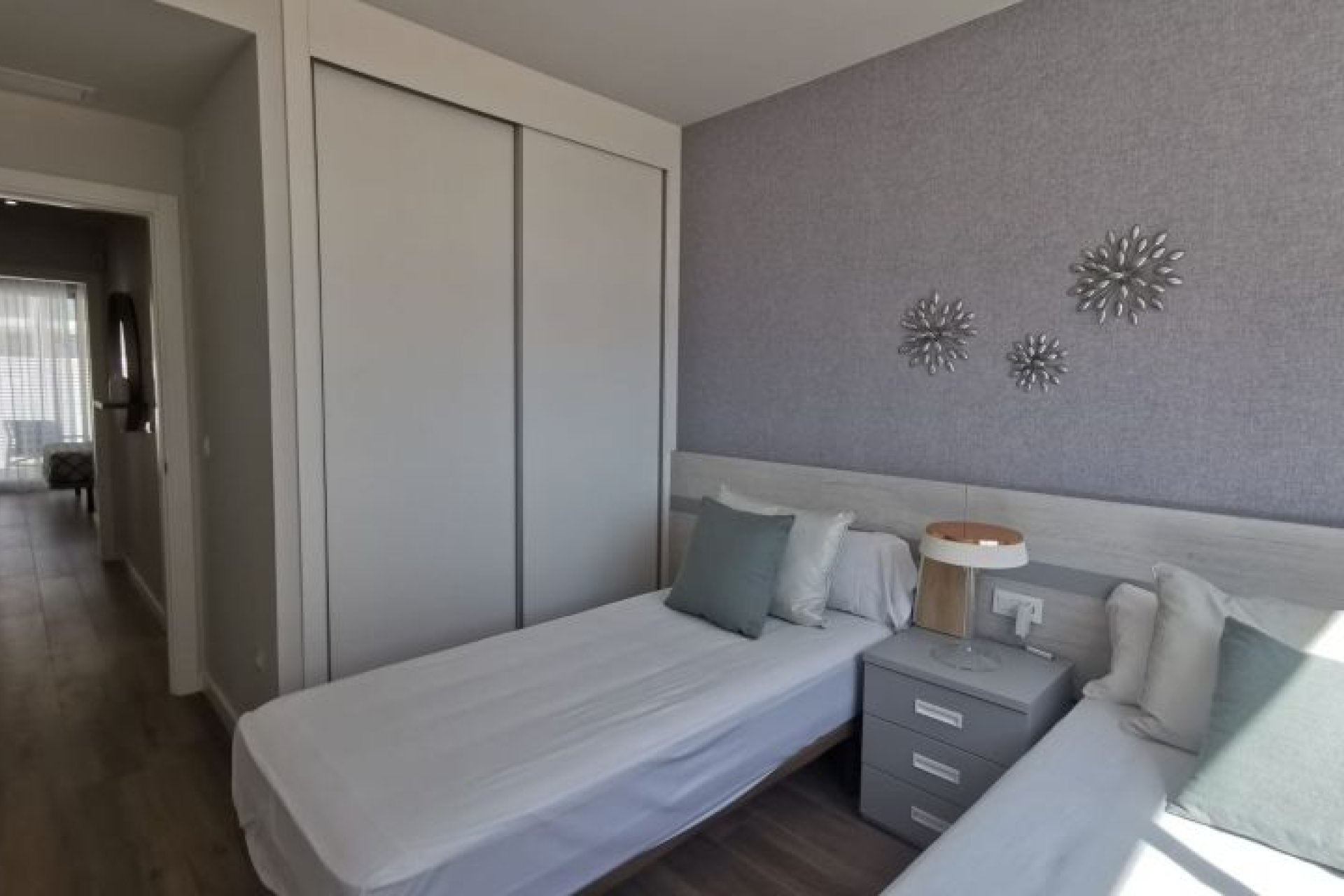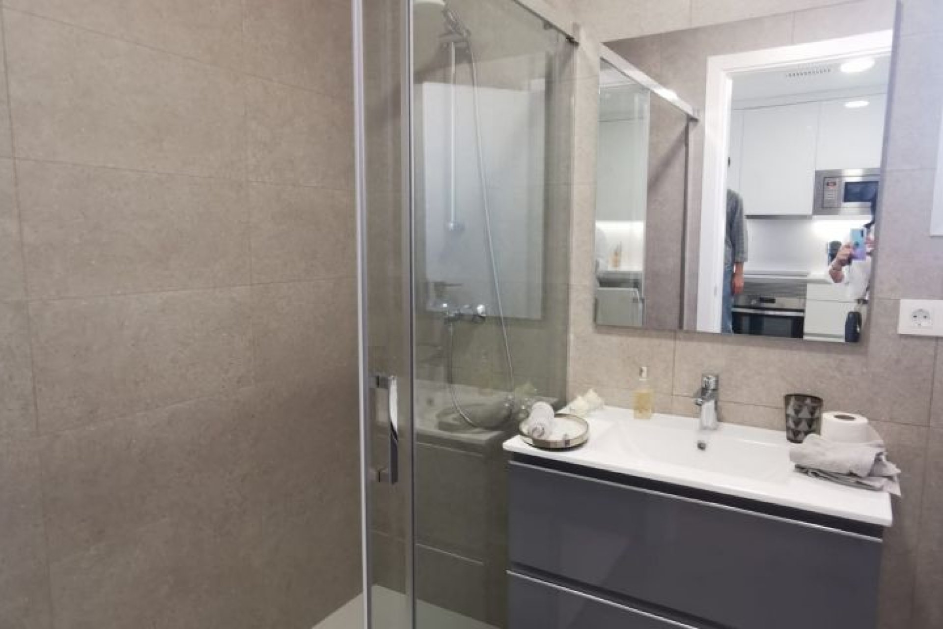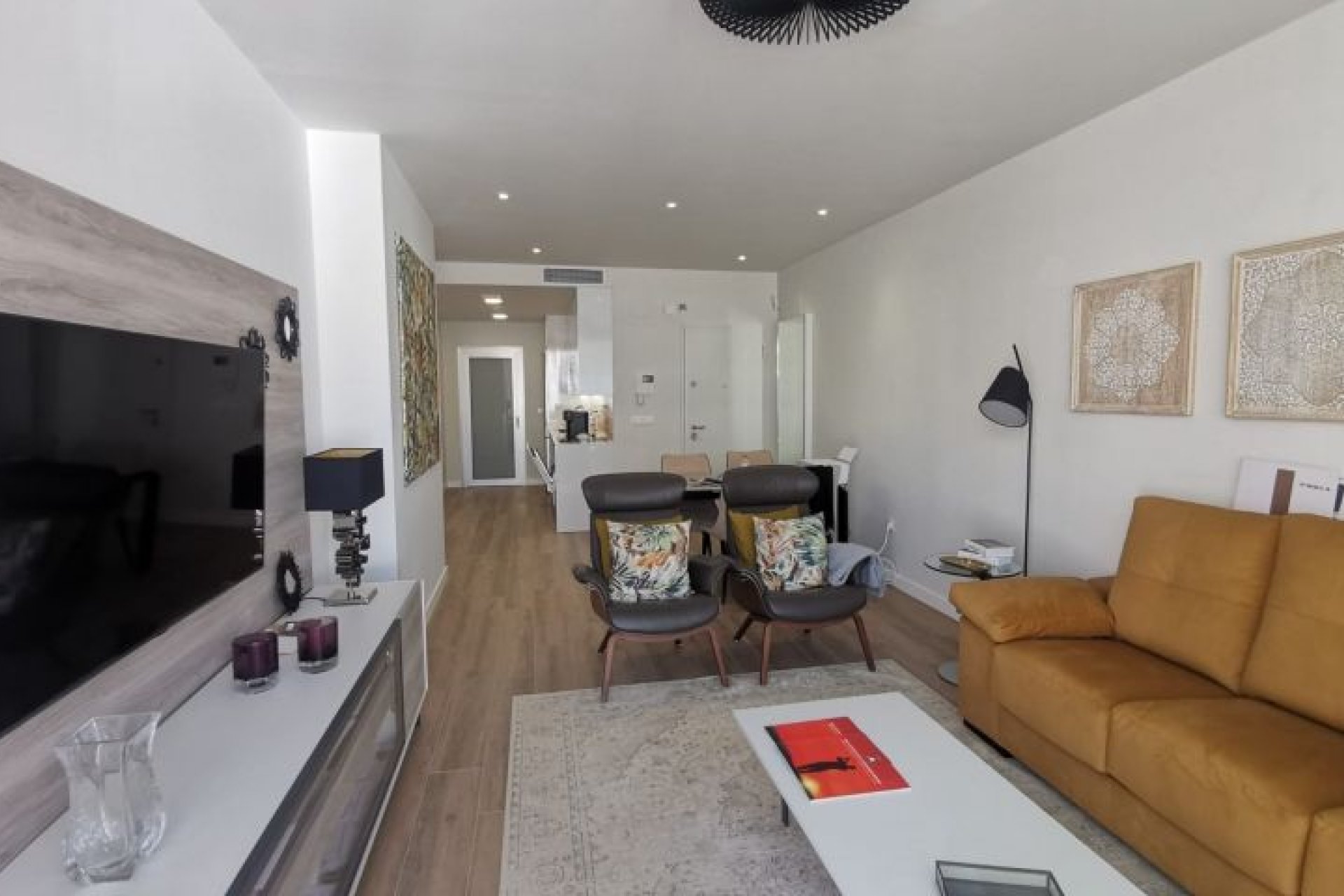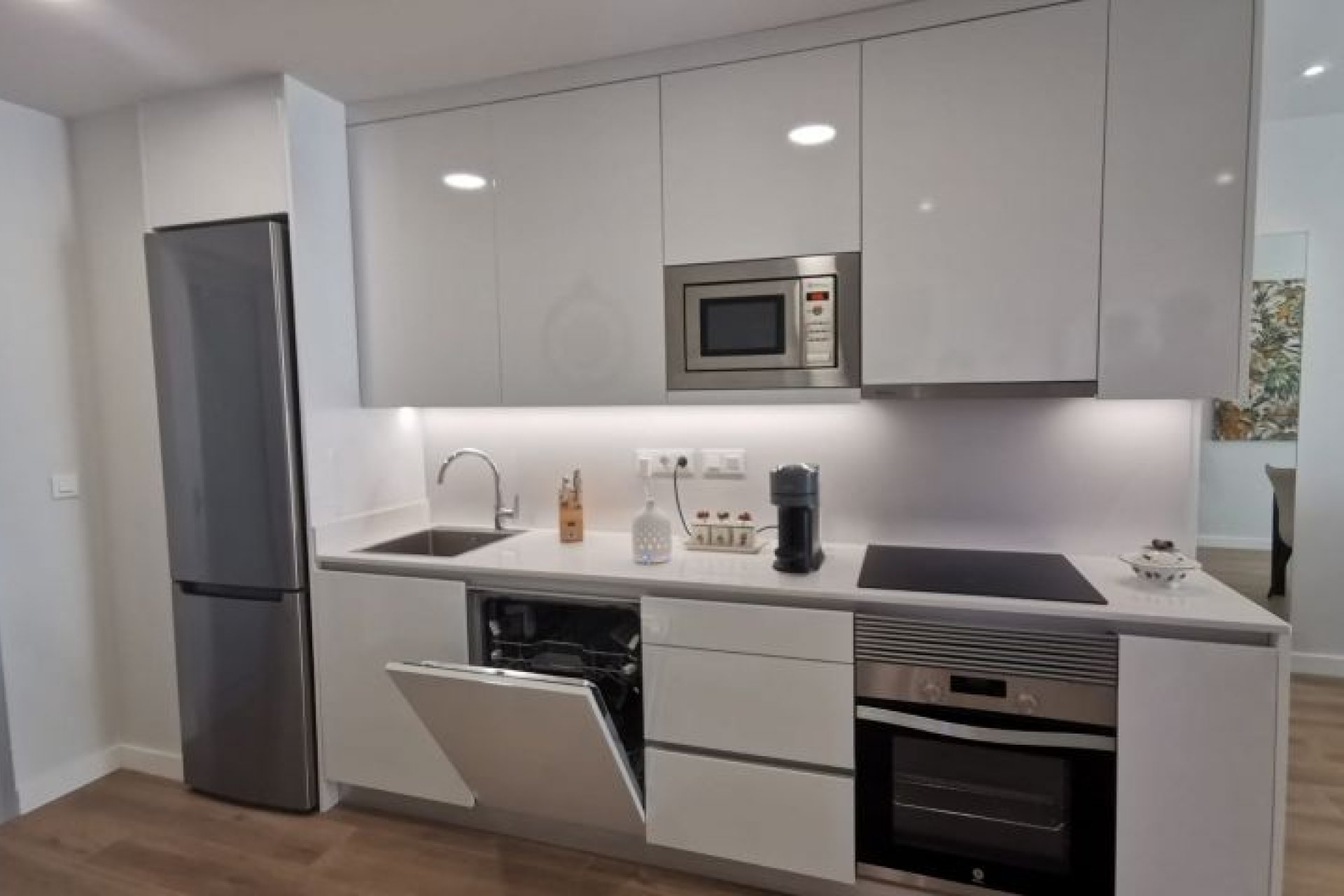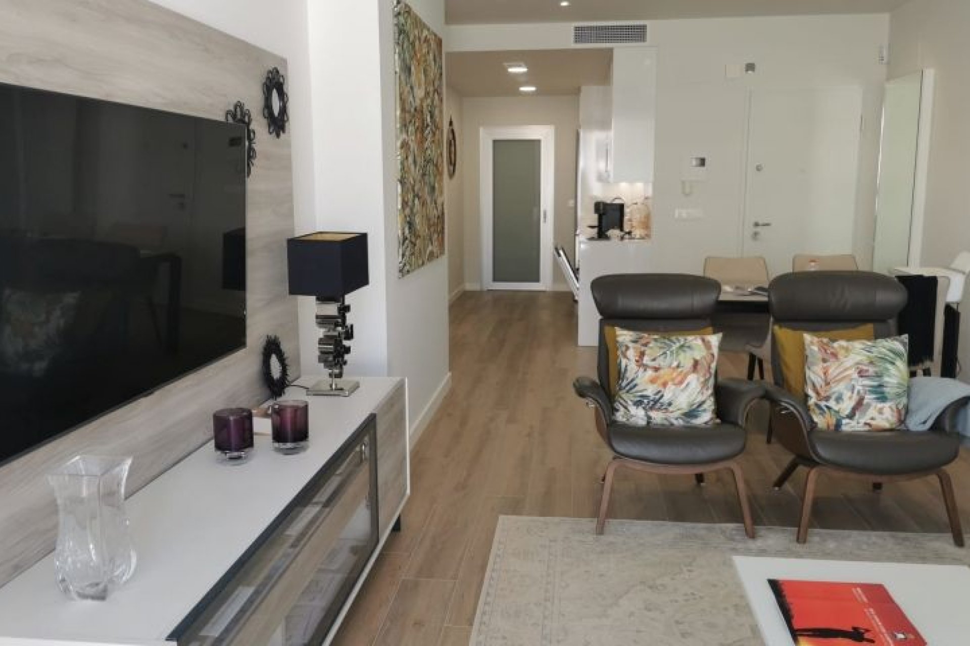 Excellent appartement près du centre commercial Zenia Boulevard, des meilleures plages d'Orihuela Costa et des terrains de golf. Infrastructure parfaite à proximité des restaurants, centres sportifs, commerces, écoles...Appartement de deux chambres, grande terrasse et beaux espaces communs. Il a un espace ouvert entre la cuisine et le salon, deux grandes chambres avec placards, une buanderie et deux salles de bains, dont une attenante à la chambre principale. La maison est livrée avec des appareils électriques, un ensemble d'éclairage LED, un chauffage au sol et des écrans de douche dans les salles de bains, la climatisation installée par des conduits, le système de maison intelligente Legrand installé, un système de ventilateur d'eau chaude, des stores motorisés et un parking privé. L'urbanisation a une grande piscine communautaire, des espaces verts, un sauna.