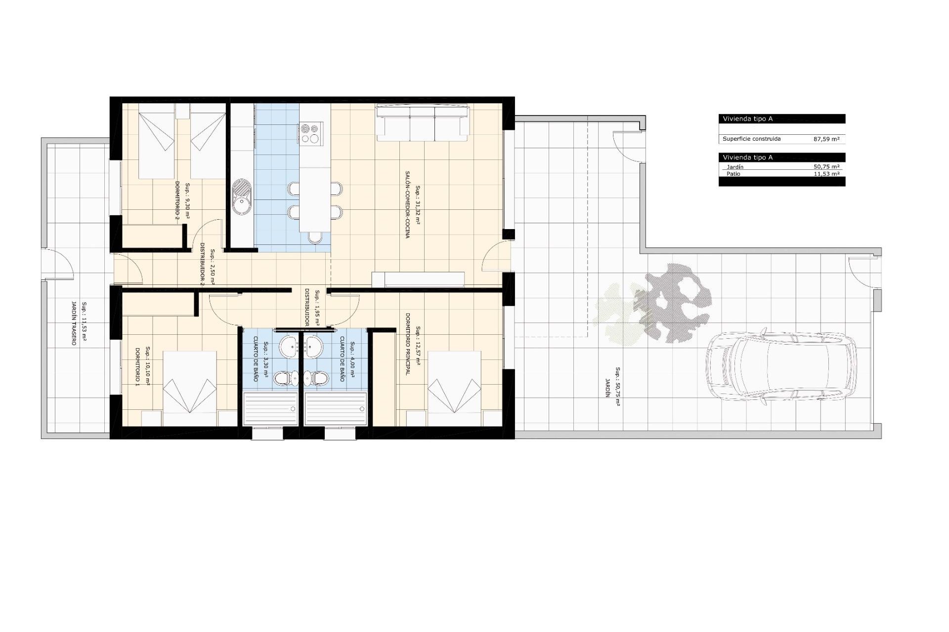 Le projet comprendra 8 bungalows répartis en 2 blocs de 4 unités chacun avec 2 et 3 chambres à coucher et 2 salles de bain équipées.