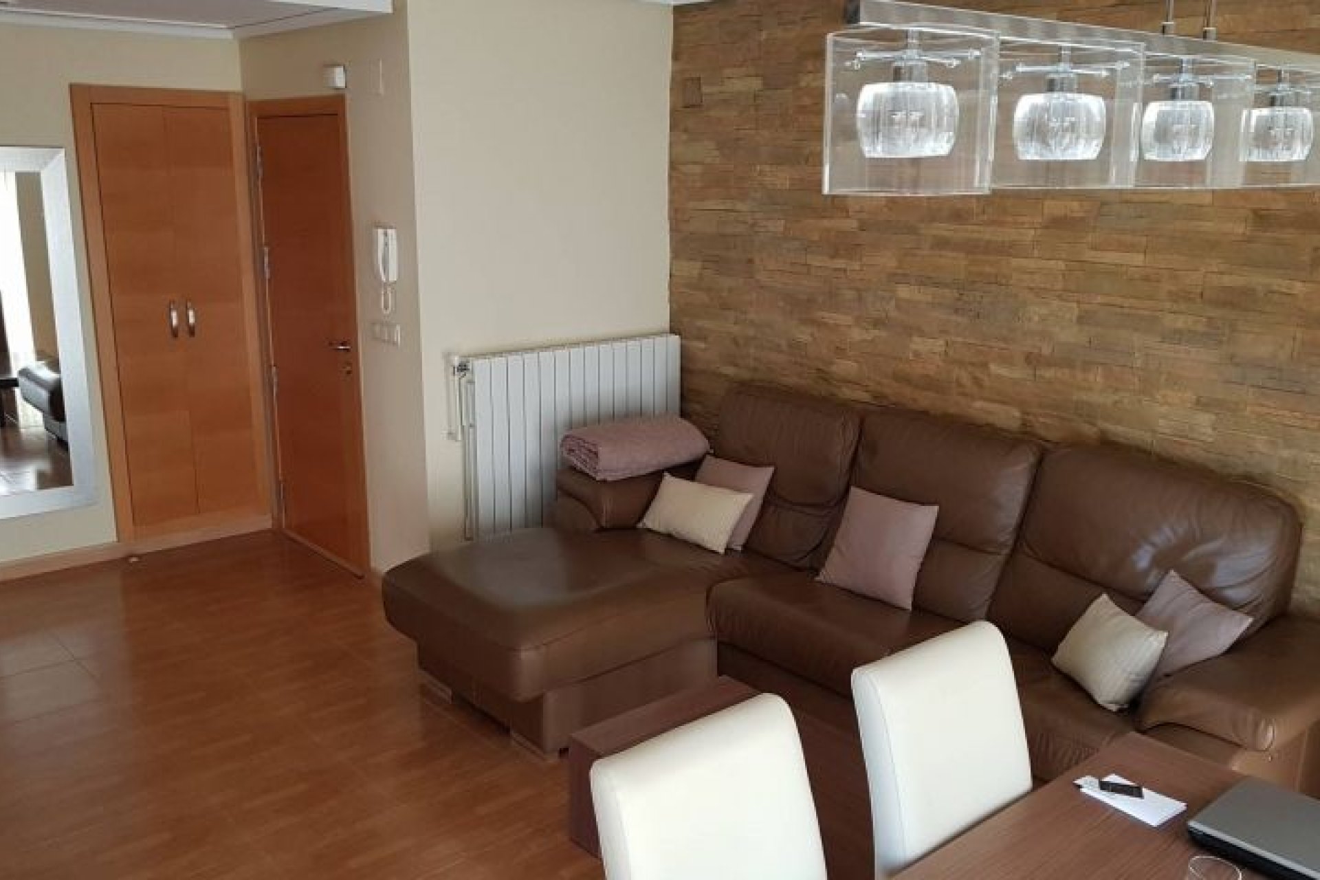 Bonito piso en Hondón de las Nieves de 90m2, construido en 2008. Este piso cuenta con 3 dormitorios dos de ellos de gran tamaño y 2 cuartos de baño, uno de ellos en la habitación principal; una amplia cocina equipada con fogones eléctricos y encimera de granito, desde la cual tenemos acceso a una galería y un patio con unas bonitas vistas a la montaña. En el salón comedor totalmente amueblado y tenemos acceso a un acogedor balcón que aporta mucha luminosidad al salón comedor. Además la casa cuenta con sistema de bomba frío/calor por conductos, calefacción de gas propano con radiadores en toda la casa , armarios empotrados en todas las habitaciones así como un vestidor hecho a medida en la habitación principal por lo que no tendrás problema con el espacio de almacenaje además todas las cortinas de la casa están hechas a medida. La vivienda también cuenta con una terraza comunitaria en la que podrás disfrutar de un gran solarium, una amplia plaza de garage en la cual cabe cualquier tipo de coche así como un trastero independiente. La vivienda se encuentra a 1 minuto del centro del pueblo andando, a 20 minutos del Hospital y a 30 mnutos de la playa más cercana.