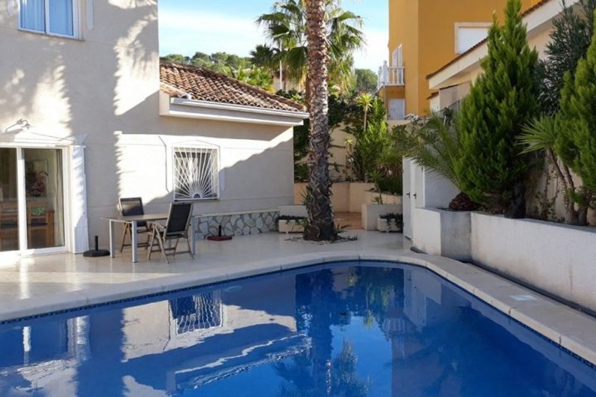 Chalet con encanto se encuentra en zona muy consolidada, tranquila rodeado de montañas ubicada entre las localidades de Hondón de las Nieves y en Hondón de los Frailes. La villa tiene una hermosa vista de las montañas. La casa ofrece espectaculares vistas, dispone de cocina americana, amplio salón comedor, amplio dormitorio principal con baño en suite, otro dormitorio con cama de matrimonio, segundo baño y despacho. En la primera planta hay un cuarto dormitorio con baño. Dispone de calefacción distribuida por suelo radiante, aire acondicionado (frío/calor), agua corriente, electricidad, televisión por internet. El edificio tiene puertas anchas sin barreras y un jardín aplanado, por lo que también es apto para personas con movilidad reducida. El terreno es de 580 m² en una hermosa piscina, un gran garaje en un jardín de bajo mantenimiento. Solicite mas información o venga a visitarla!!!!