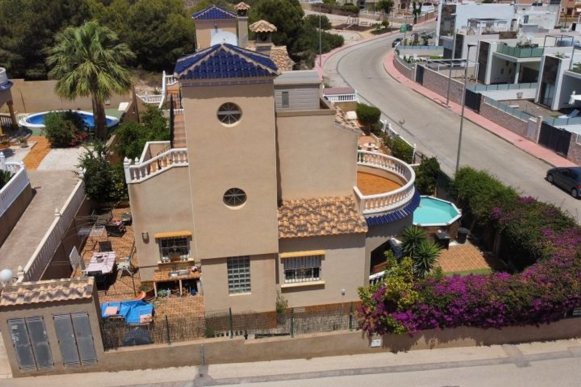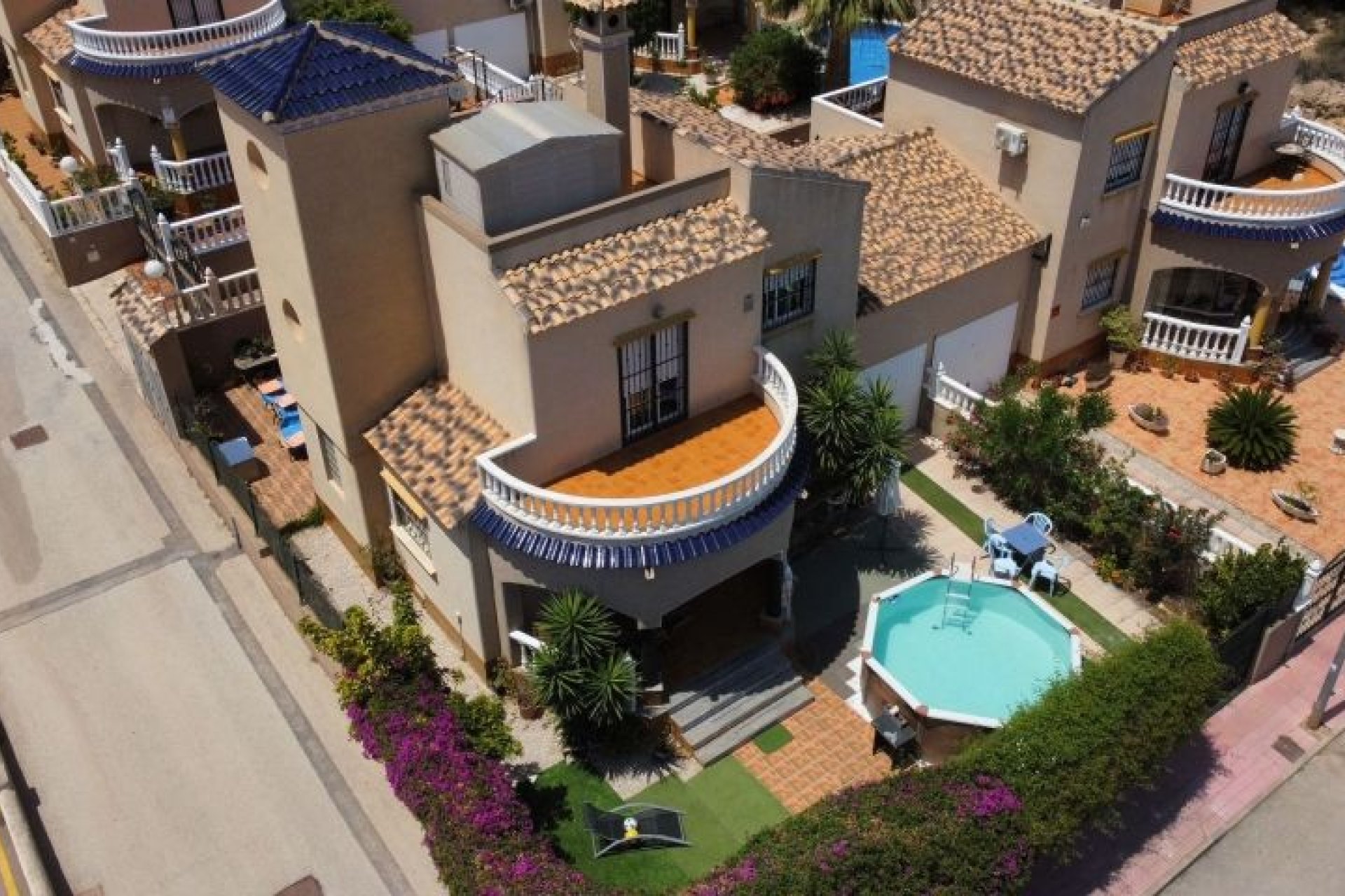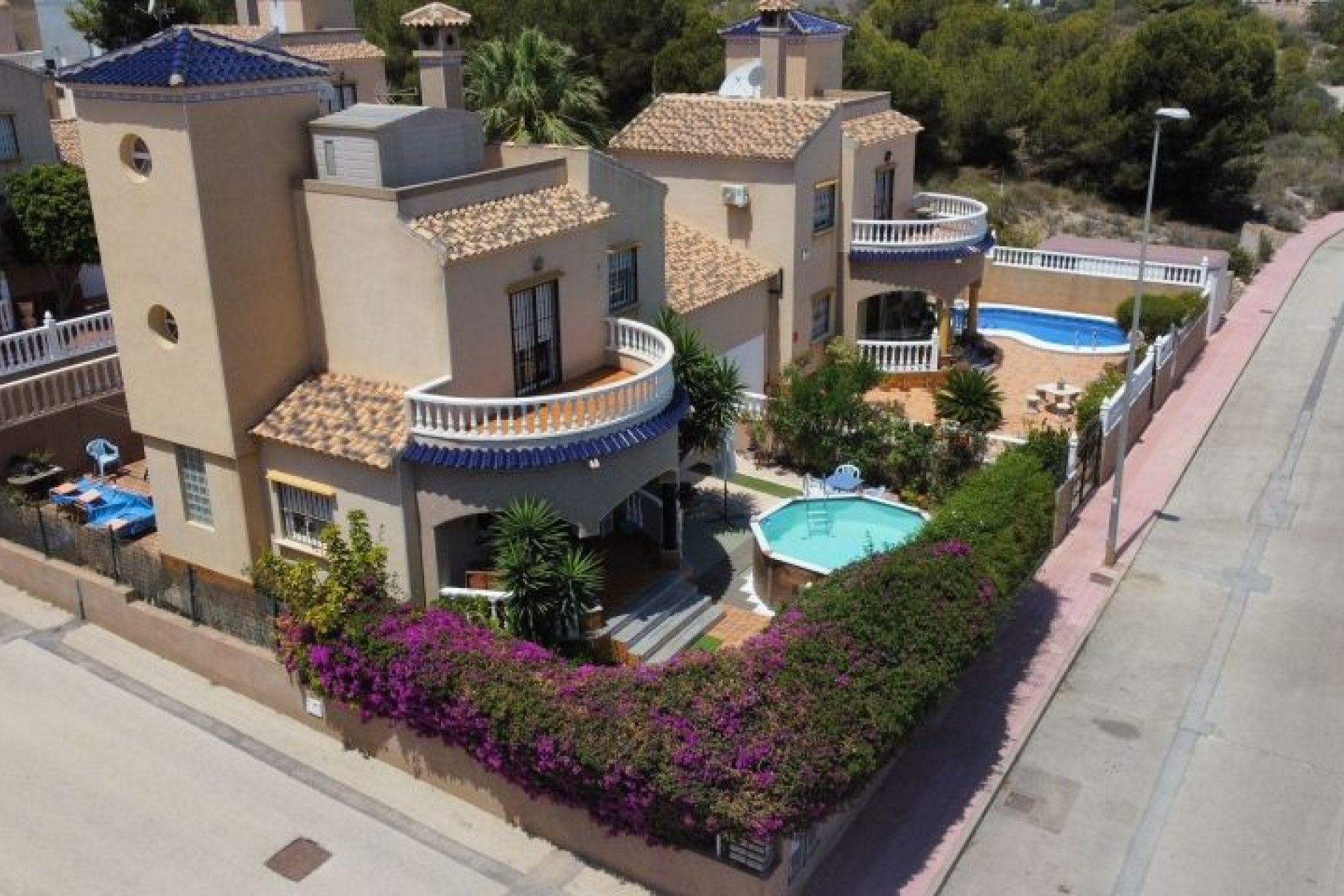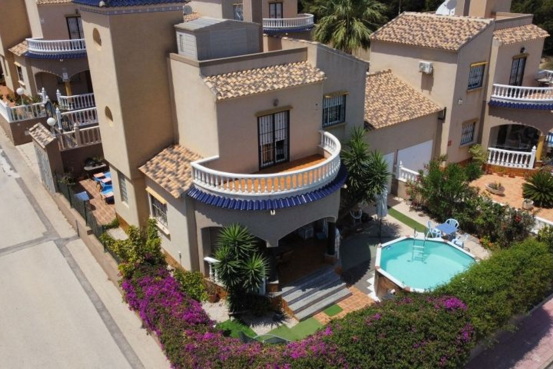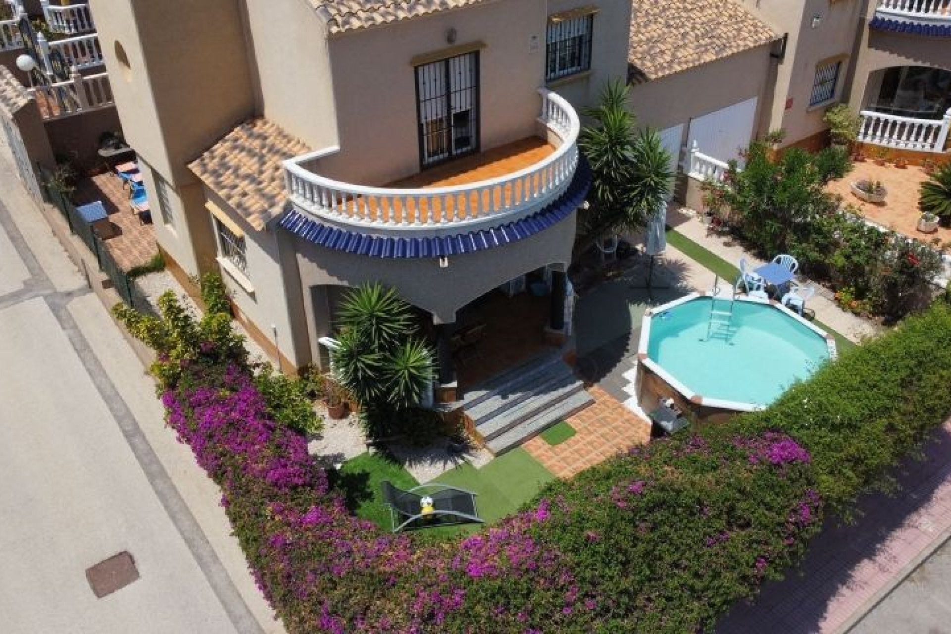 AMPLIO CHALET EN ESQUINA CON PARCELA DE 273 m2 en ORIHUELA COSTA Situado en zona Residencial tranquila, a 800 m. de Centro Comercial Via Park, Supermercado Aldi, a 2 km de los Campos de Golf de Villamartín, Las Ramblas, campoamor, a 2 km de Centro Comercial Zenia Boulevard y a 3 km de las Playas de Punta Prima, Playa flamenca, La Zenia, ... La vivienda dispone de Parcela de 273 m2, Piscina prefabricada, Zona ajardinada, Porche amplio en zona frontal y Chill Out en zona trasera. Salón amplio con Chimenea, Baño completo, Dormitorio y Cocina Independiente con acceso directo a Parcela en Planta Baja. En Planta Primera dispone de Baño completo, dos dormitorios, uno de ellos con acceso a Terraza frontal y desde la zona de la escalera se accede a la otra Terraza y al Solarium. Vistas a la Laguna Rosa. Pre instalación de Aire Acondicionado. Instalación de Gas Natural de Red para fogones de cocina y agua caliente. Se vende sin muebles. Muy Buena Inversión.
