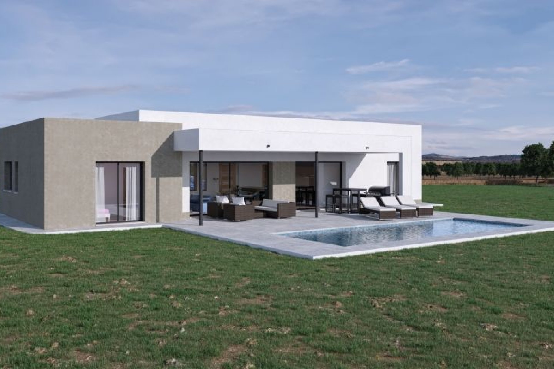 New Construction Villa With Stunning Views Hondon Las Nieves. Nuevas villas de nueva construcción con 3 dormitorios y 2 baños. Cuenta con una parcela de 10.000m2. Las villas están a 3 minutos de Hondon de las Nieves. Construcción al más alto nivel con un diseño moderno, mucha luz natural que entra en la propiedad gracias a los grandes ventanales que acceden al salón/comedor y a los dormitorios. La villa tiene unas vistas tanto a la piscina y al jardín como a las montañas de la zona. La distribución de la villa ha sido diseñada por arquitectos expertos en la materia, cuidando hasta el más mínimo detalle en el proceso de construcción. La villa cuenta con una piscina privada en el jardín con impresionantes vistas a las montañas. Estas modernas villas independientes están cerca del típico pueblo de Hondon de las Nieves, situado a 30 minutos de la ciudad de Alicante, Elche.... donde puedes disfrutar de todas las comodidades, muchos bares, tiendas y excelentes restaurantes. Tienen una ubicación fantástica a tan solo 30 km de las playas de Alicante y del aeropuerto. Solicite mas información o venga a visitarla. Description Quality Memorandum ENERGY EFFICIENT Sigle family-home Dimensions Construction surfaces5 Land Plot: 10.000 m². FOUNDATION - Of reinforced concrete. STRUCTURE - Load-bearing walls of aerated concrete block (YTONG type) 30 cm thick. - Reinforced concrete slabs. Roof top DECK - Inverted flat roof made up of waterproof bituminous sheet, 10 cm XPS thermal insulation, geotextile layer and gravel protection layer. INTERIOR PARTITIONS - Large-format ceramic brick. COATINGS EXTERNAL WALLS - White single-layer mortar on the façade and decorative ceramic stoneware cladding. INTERIOR WALLS - Plaster finish with two coats of smooth plastic paint. - Decorative porcelain stoneware tiling in bathrooms and kitchen. - White ceramic stoneware tiling in the gallery. EXTERNAL FLOORING - porcelain stoneware, being non-slip on terraces. EXTERNAL FLOORING - porcelain stoneware, being non-slip on terraces. INSULATIONS - On the floor of the house, an 8 cm layer of XPS insulation. - 30 cm thick aerated concrete blocks are placed on the walls. - On the roof a layer of 10 cm of XPS. TOILETS - Vitrified porcelain toilets. - Bathroom cabinet under the sink. - Mirror. - Accessories. - Walls tiled with decorative porcelain stoneware up to the ceiling. - Resin shower tray with waterproofing on the floor and plinth after the tiling. - Single-lever faucet. KITCHEN - Modern style modular furniture in the lower and upper parts and on the island. - Ceramic induction hob with four burners. Included TEKA or similar - Oven. TEKA or similar ( Integrated carpentry doors ) - Dish waher machine TEKA or similar ( integrated Carpentry doors ) - Refrigerator, teka or similar ( integrated carpentry doors ) - Stainless steel smoke extractor. TEKA or similar - Stainless steel sink with a bowl and drainer. - work top ( Silestone ) EXTERNAL Housing enclosures, windows, doors - Sliding windows in aluminum profiles with thermal break and anthracite finish. - Double glazing with insulating chamber, with a transmittance of U=1 W/m²K and solar factor g=0.38. - Motorized aluminum blinds in the living room and two bedrooms. - Armored entrance door with stainless steel handle. INTERIOR CARPENTRY - Smooth interior doors with a white lacquered finish and stainless-steel handles and fittings. -Built-in wardrobes with smooth doors with a white lacquered finish and stainless-steel fittings. HEATING/AC - Central conduits to all amenities. - standard centralized AACC system - Aerothermia system. Optional recommended Utilities Grid connected Photovoltaic 5Kw system. Optional recommended Mobile Signal Booster Repeater