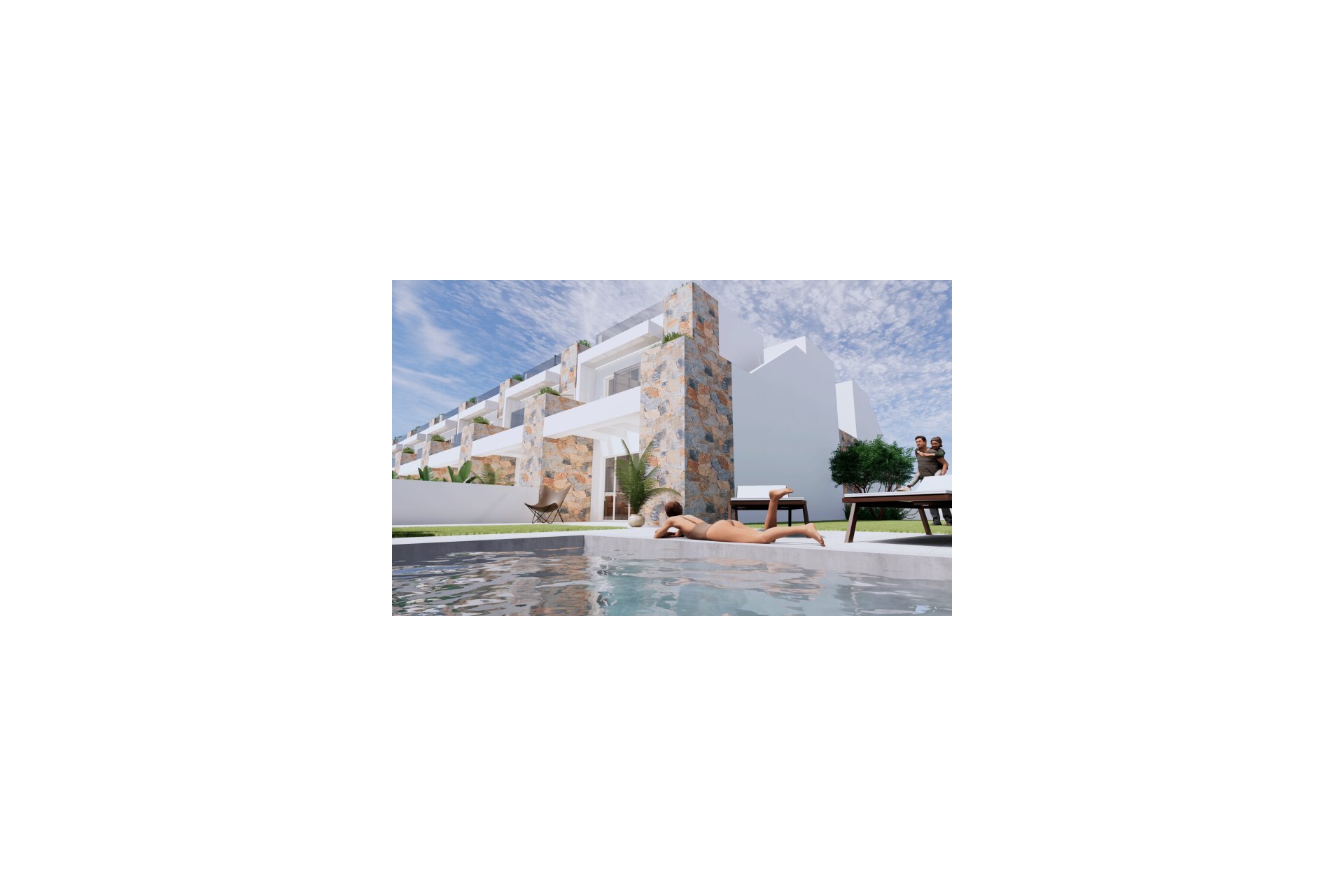 Este exclusivo complejo residencial consta de 3 dormitorios y 2 baños, con piscina privada 3.20x2.20 incluida en el precio y también otra piscina comunitaria (coste mensual de la comunidad es de 18€ al mes), solárium privado, ideales para disfrutar del sol durante todo el año.