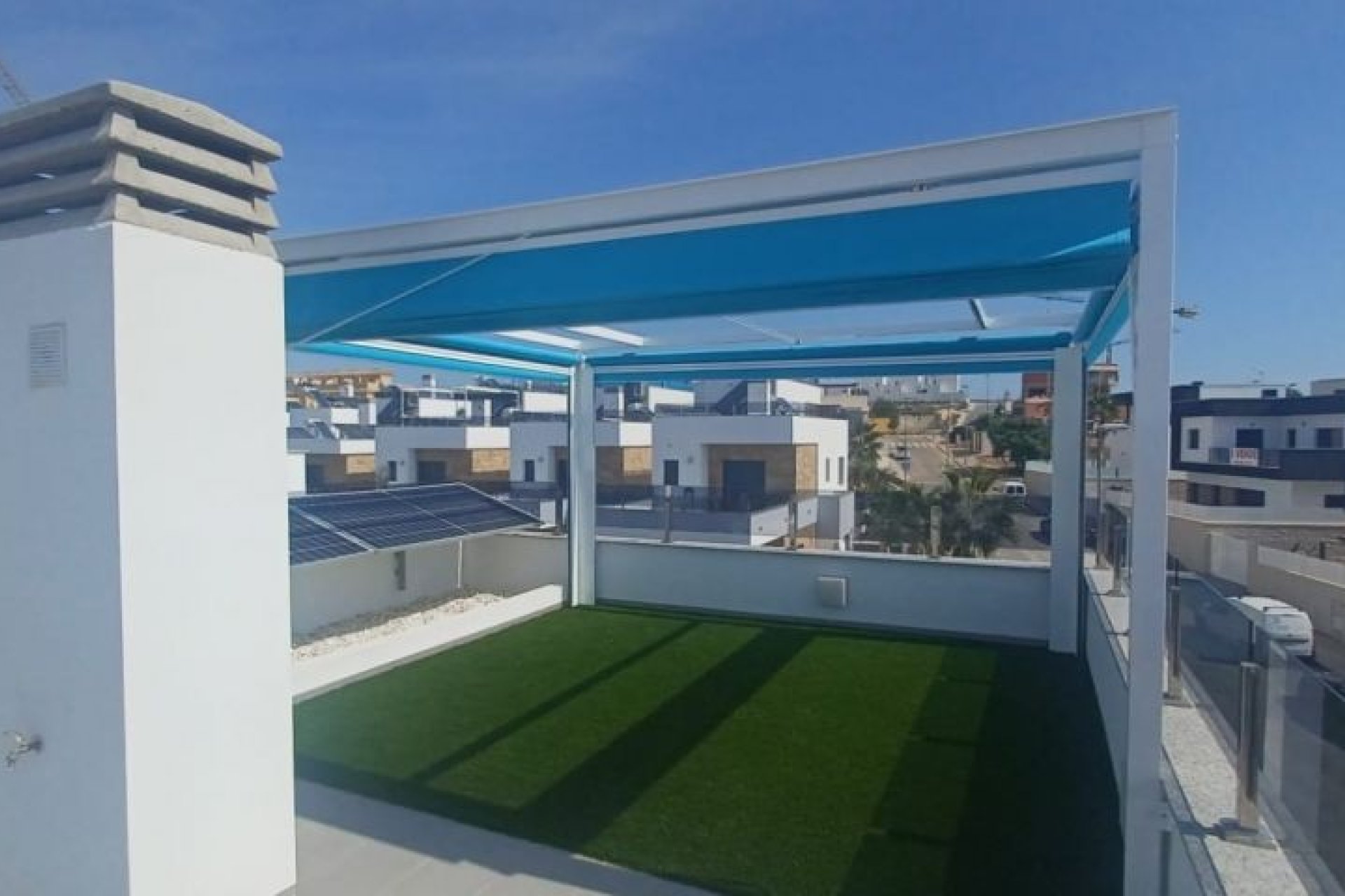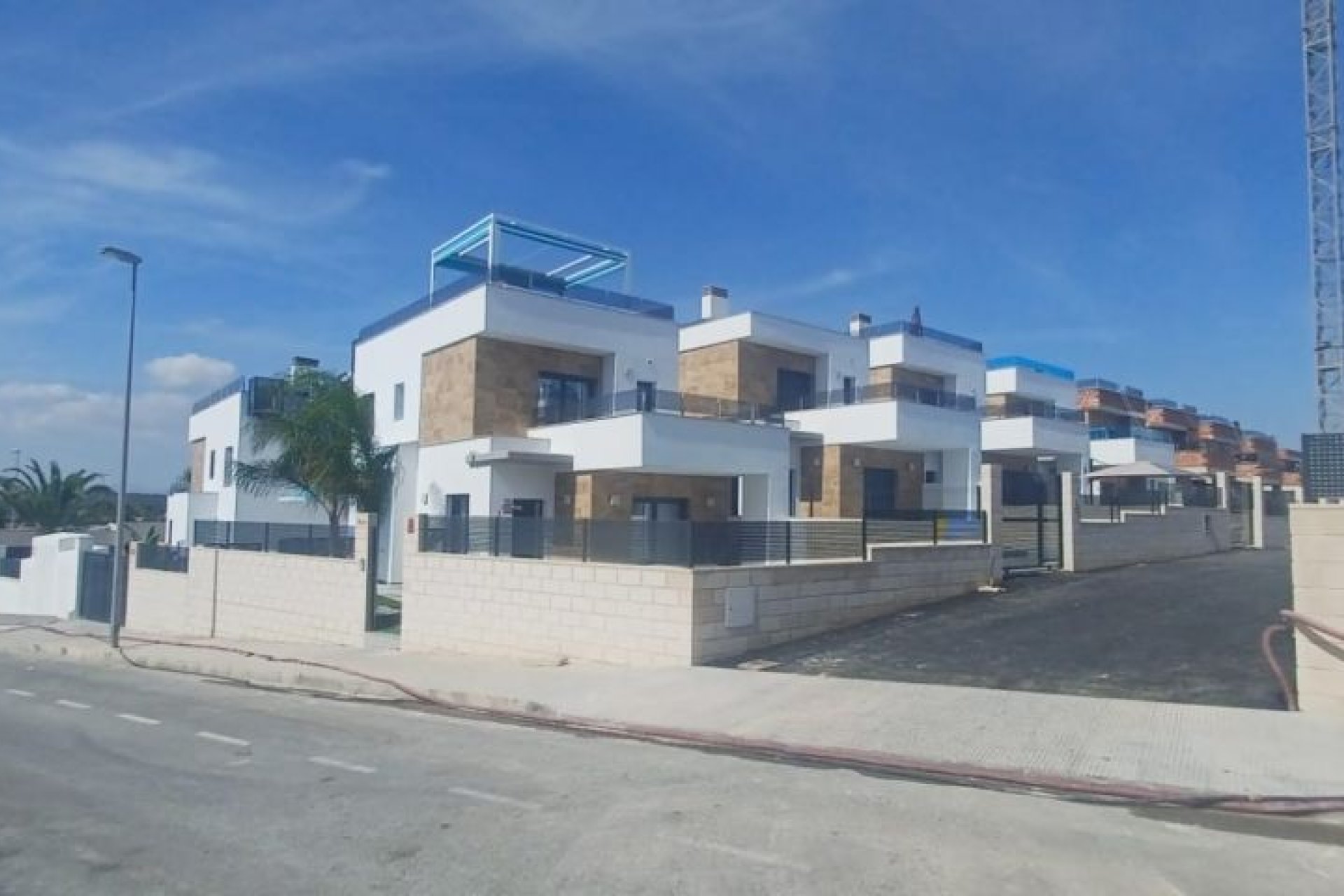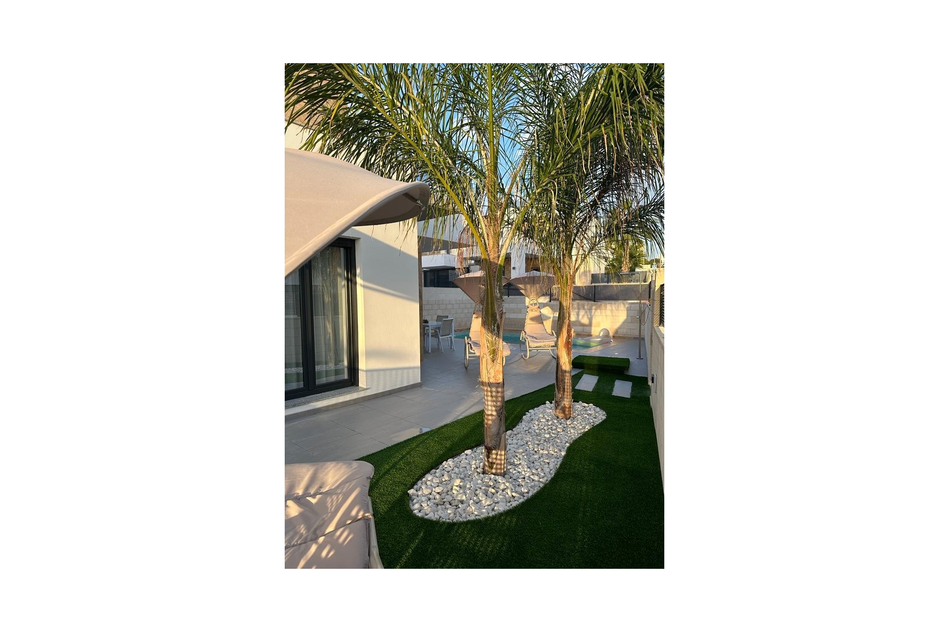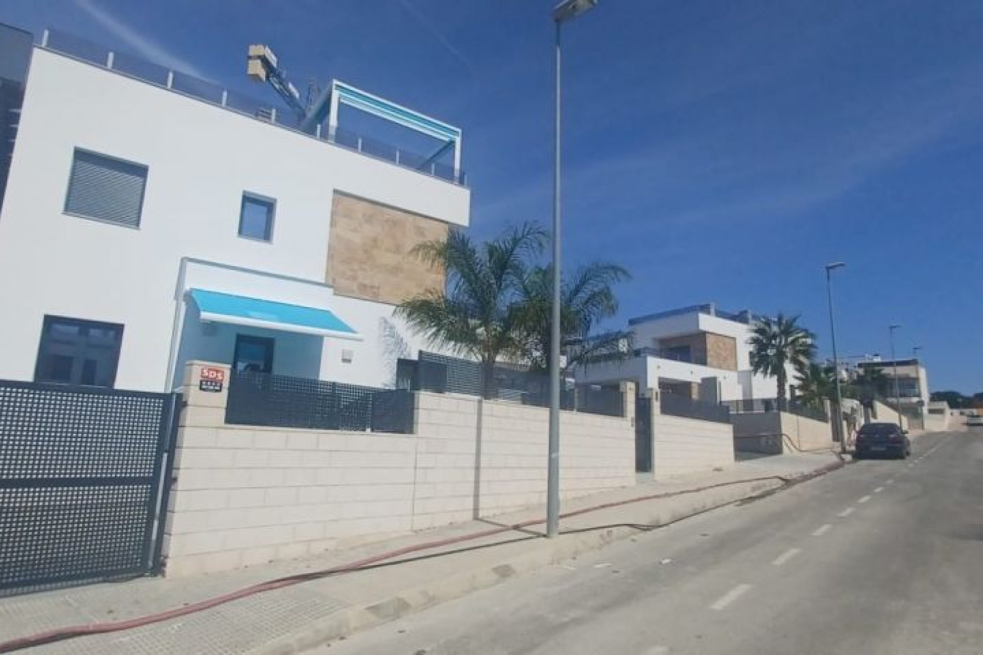 ESPECTACULAR CHALET DISEÑO MODERNO CON PARCELA Y PISCINA A ESTRENAR SITUADA EN LUGAR DE ENSUEÑO EN ESQUINA ORIENTACIÓN SUR. VISTAS PANORÁMICAS Situado en zona residencial tranquila , andando a todo tipo de Servicios como Parada de Bus, Tiendas, Restaurantes,...a 500 m del Ayuntamiento de Benijofar, a 1,2 km del Centro Comercial Benimar y a 3 km de Ciudad Quesada, con todo tipo de Servicios. La vivienda se construyó en 2023. Dispone de 2 Plantas. Planta Baja con Parcela de, Piscina y parte posterior con entrada para coche. Salón amplio con ventanal grande orientado y con acceso directo a Piscina. Cocina de diseño moderno y acceso directo a parte lateral de Parcela. Equipada con todo tipo de instalaciones modernas. Baño completo y dormitorio doble. En Planta Primera dispone de Baño completo y 2 dormitorios dobles, uno de ellos con Terraza amplia soleada. En Planta Superior gran Solarium con Toldo y vistas mediterraneas a zonas rurales y montañas de Crevillente y Orihuela. La vivienda dispone de todos los extras modernos, Toldos eléctricos, aire acondicionado, Placas solares, ...totalmente amueblada y equipada. Muy Buena Inversión. Muy buena rentabilidad.