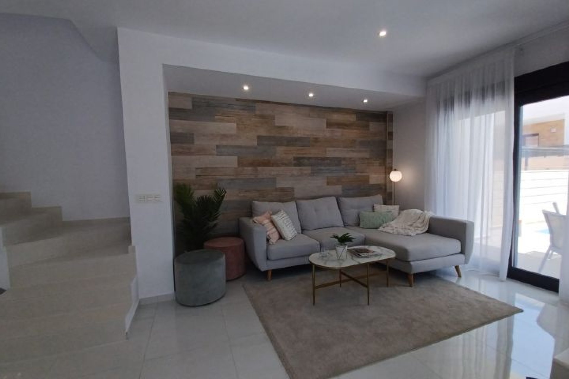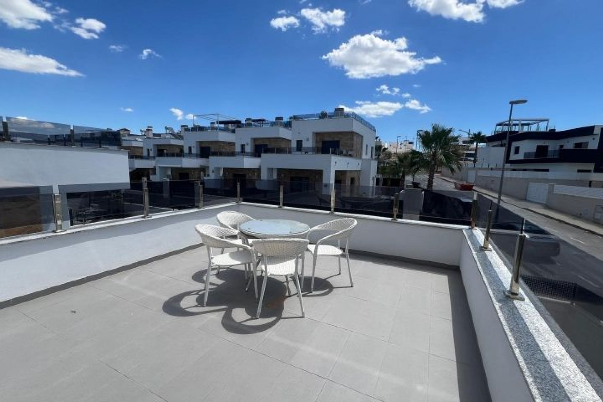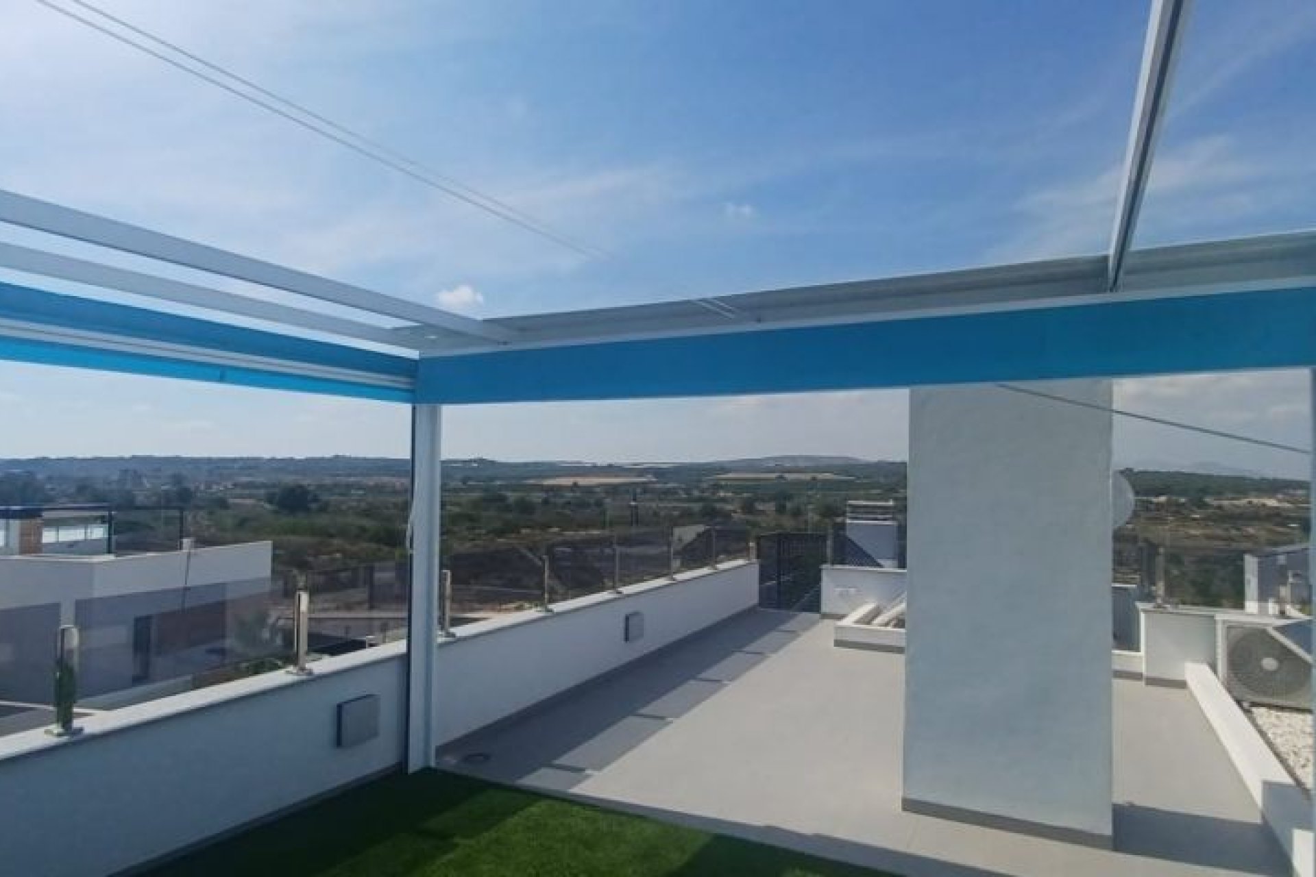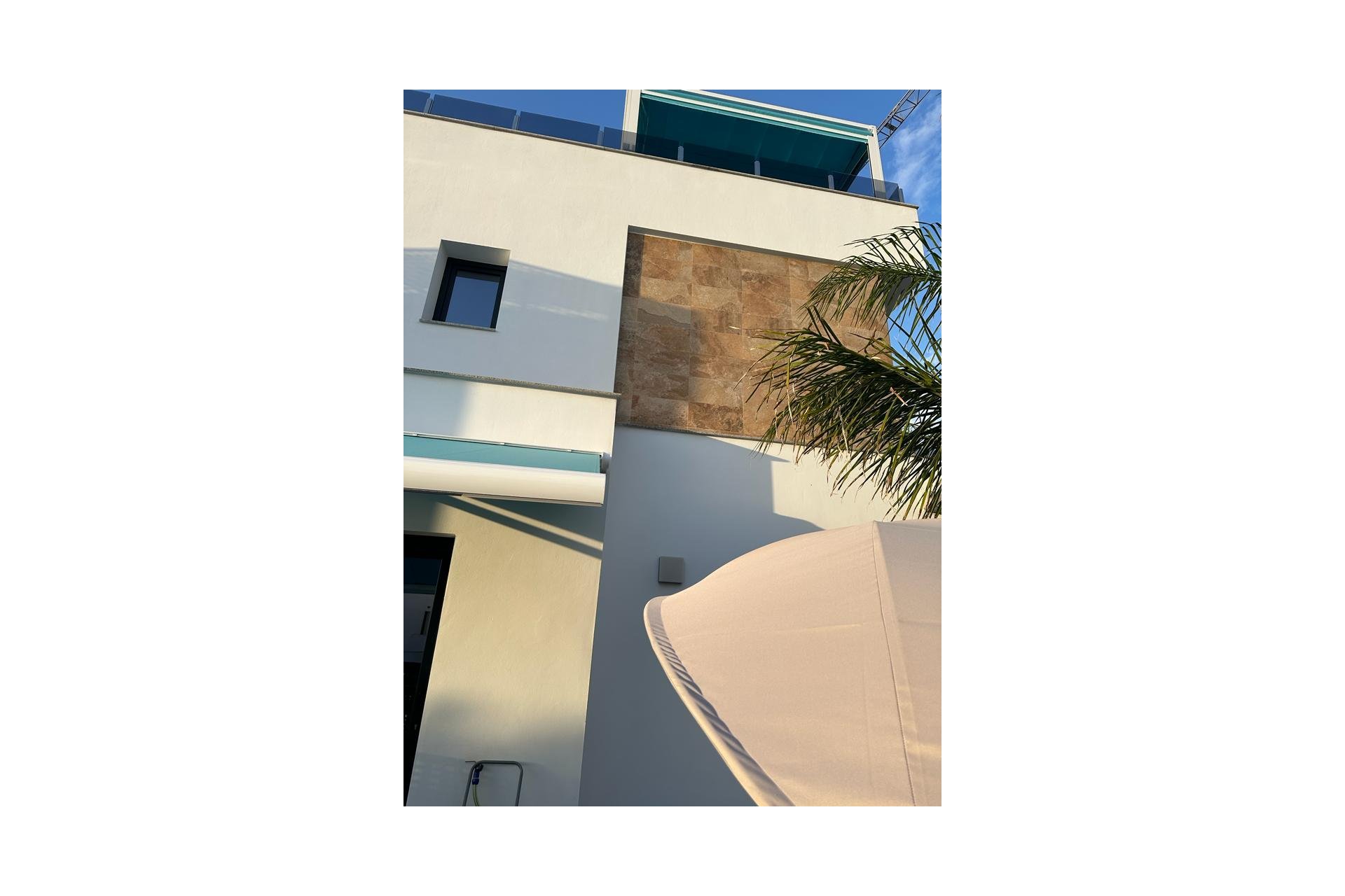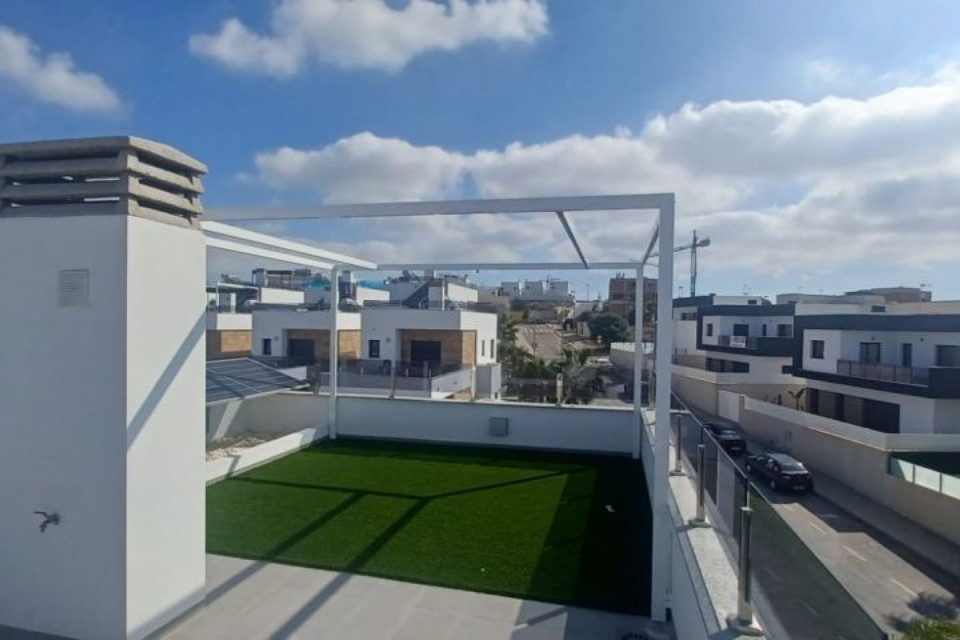 ESPECTACULAR CHALET DISEÑO MODERNO CON PARCELA Y PISCINA A ESTRENAR SITUADA EN LUGAR DE ENSUEÑO EN ESQUINA ORIENTACIÓN SUR. VISTAS PANORÁMICAS Situado en zona residencial tranquila , andando a todo tipo de Servicios como Parada de Bus, Tiendas, Restaurantes,...a 500 m del Ayuntamiento de Benijofar, a 1,2 km del Centro Comercial Benimar y a 3 km de Ciudad Quesada, con todo tipo de Servicios. La vivienda se construyó en 2023. Dispone de 2 Plantas. Planta Baja con Parcela de, Piscina y parte posterior con entrada para coche. Salón amplio con ventanal grande orientado y con acceso directo a Piscina. Cocina de diseño moderno y acceso directo a parte lateral de Parcela. Equipada con todo tipo de instalaciones modernas. Baño completo y dormitorio doble. En Planta Primera dispone de Baño completo y 2 dormitorios dobles, uno de ellos con Terraza amplia soleada. En Planta Superior gran Solarium con Toldo y vistas mediterraneas a zonas rurales y montañas de Crevillente y Orihuela. La vivienda dispone de todos los extras modernos, Toldos eléctricos, aire acondicionado, Placas solares, ...totalmente amueblada y equipada. Muy Buena Inversión. Muy buena rentabilidad.