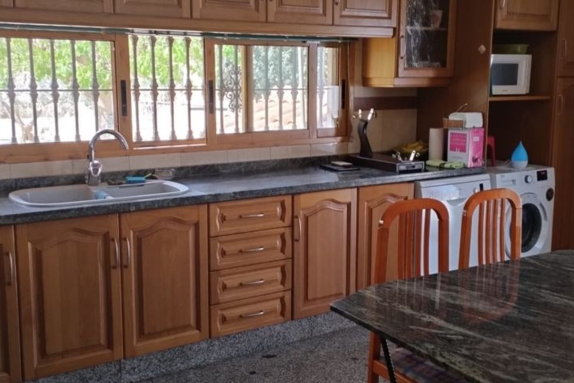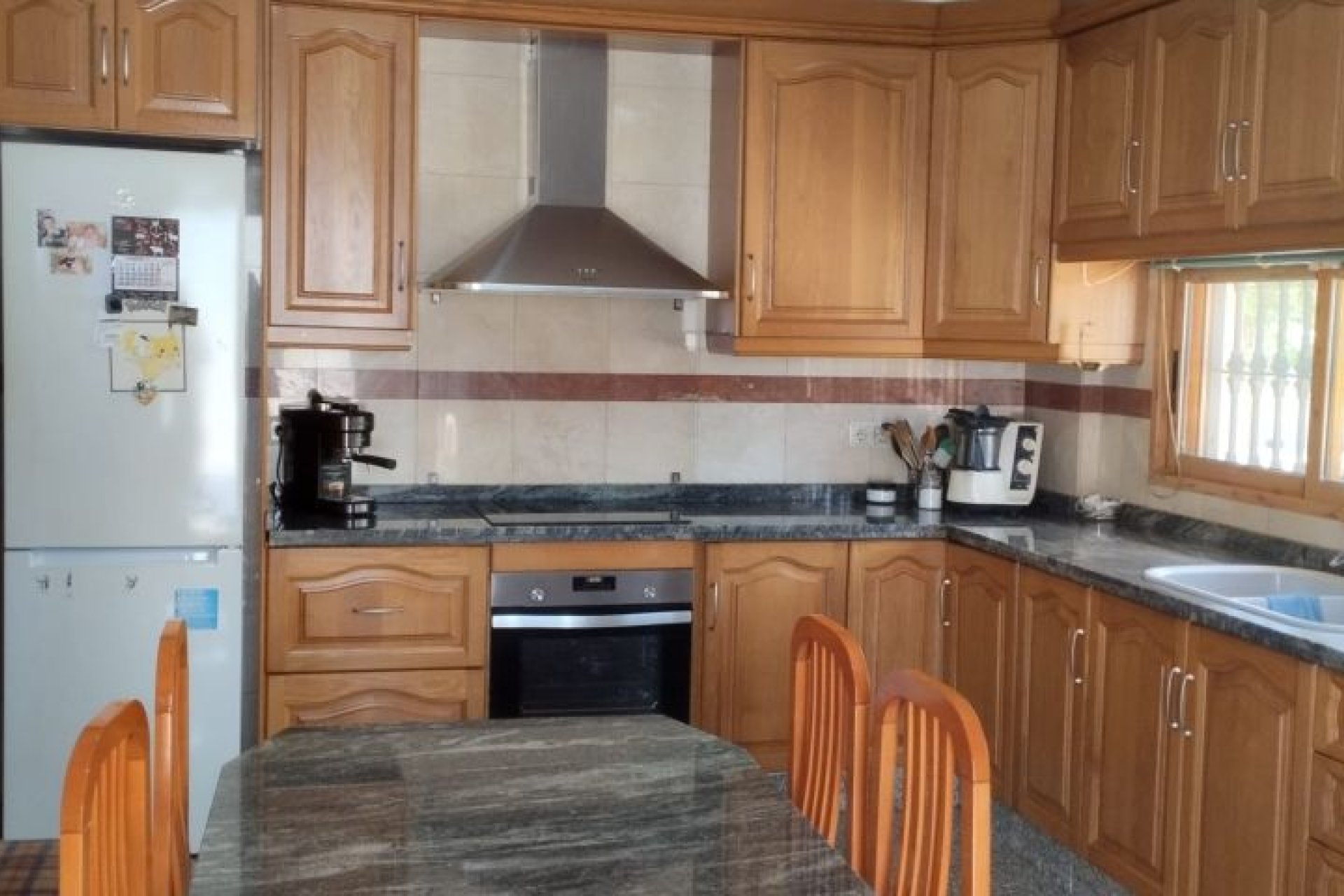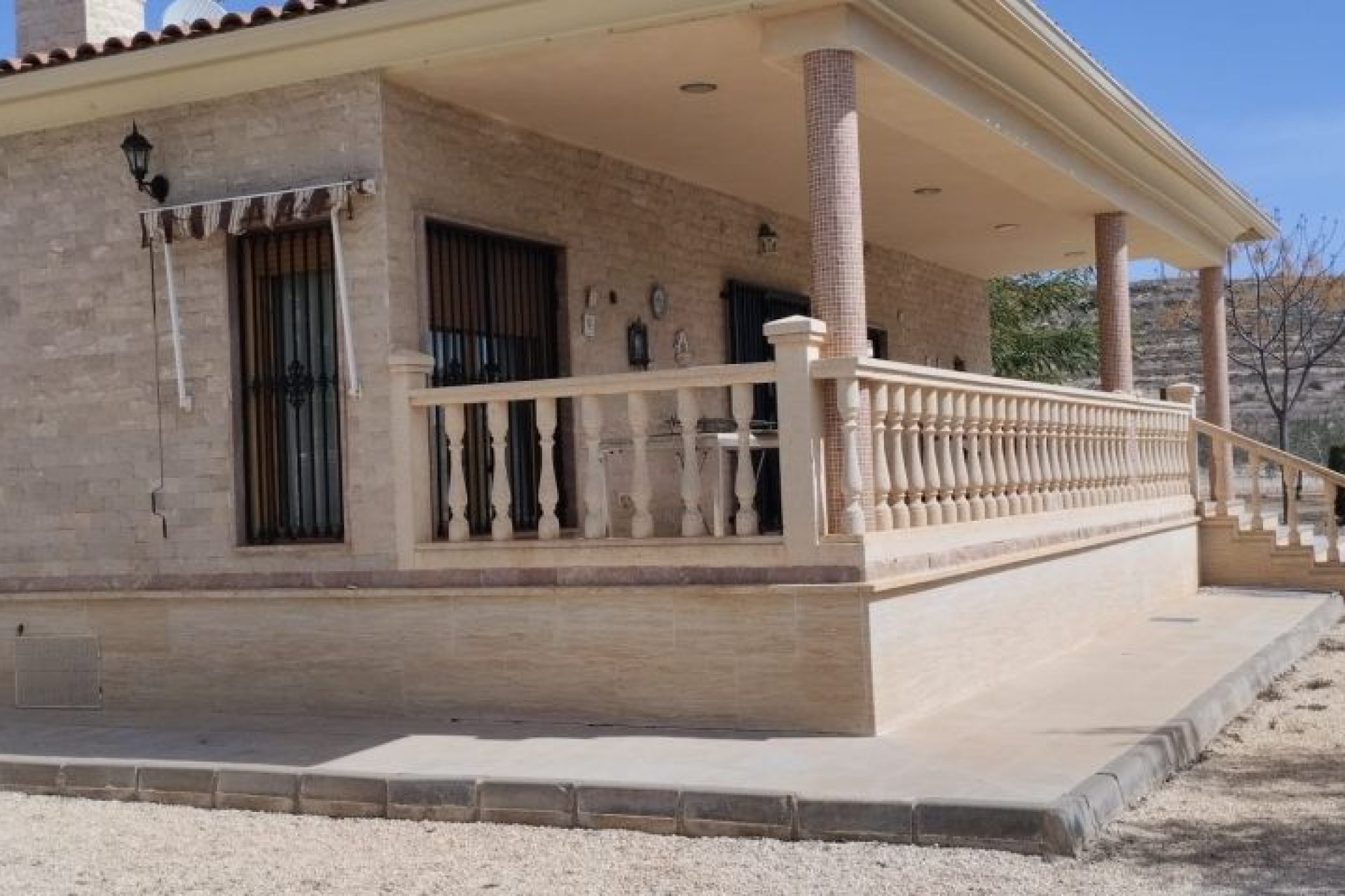 Chalet en Hondon de las Nieves. La casa cuenta con 4 dormitorios dobles, 2 baños completos, cocina, salon comedor con chimenea, carpinteria interior de madera, suelo de terrazo, carpinteria exterior aluminio/climalit. Extras: Aire acondicionado, calefaccion central, sotano, barbacoa, chimenea,luz, alarma, riego automatico, lavanderia, dos trasteros, deposito de agua, arboles, puerta automatica, jardin, armarios empotrados,vallado
