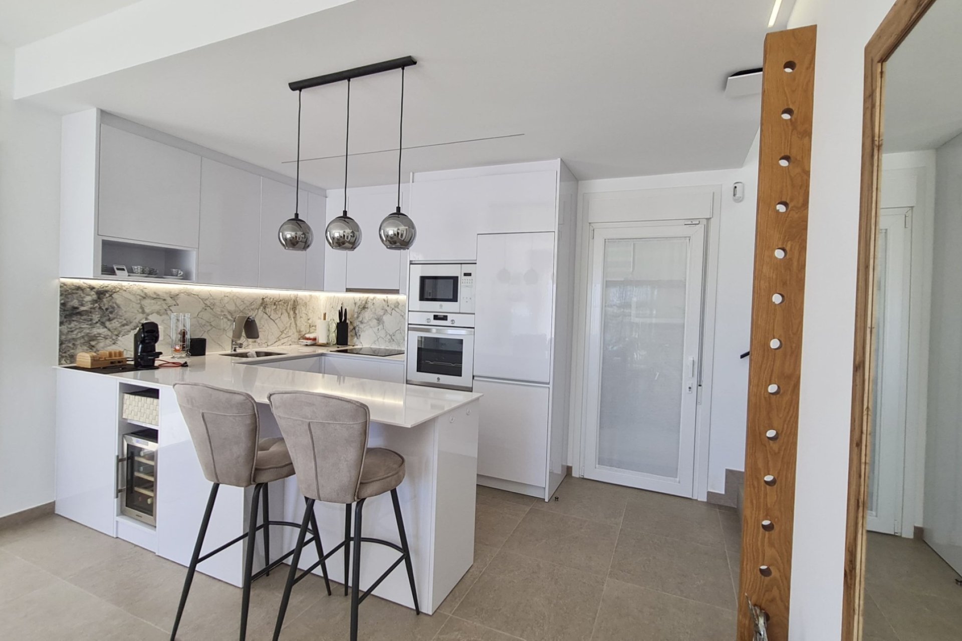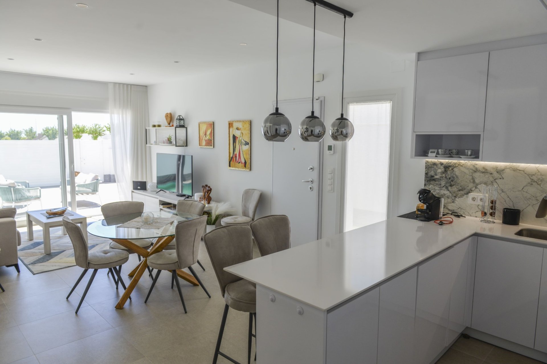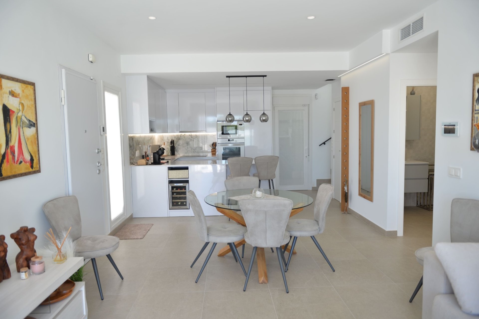 Magnifica villa de 3 dormitorios con armarios empotrados, 2 baños completos, amplia cocina totalmente amueblada y equipada conectada con el salón. Piscina privada de 15 m2, gran jardín, terraza, solarium. Dispone lavadero y trastero en la parte trasera de la vivienda. Parcela 200 m2. Superficie construida 111 m2. 2,5 km de la playa, cerca de los comercios.