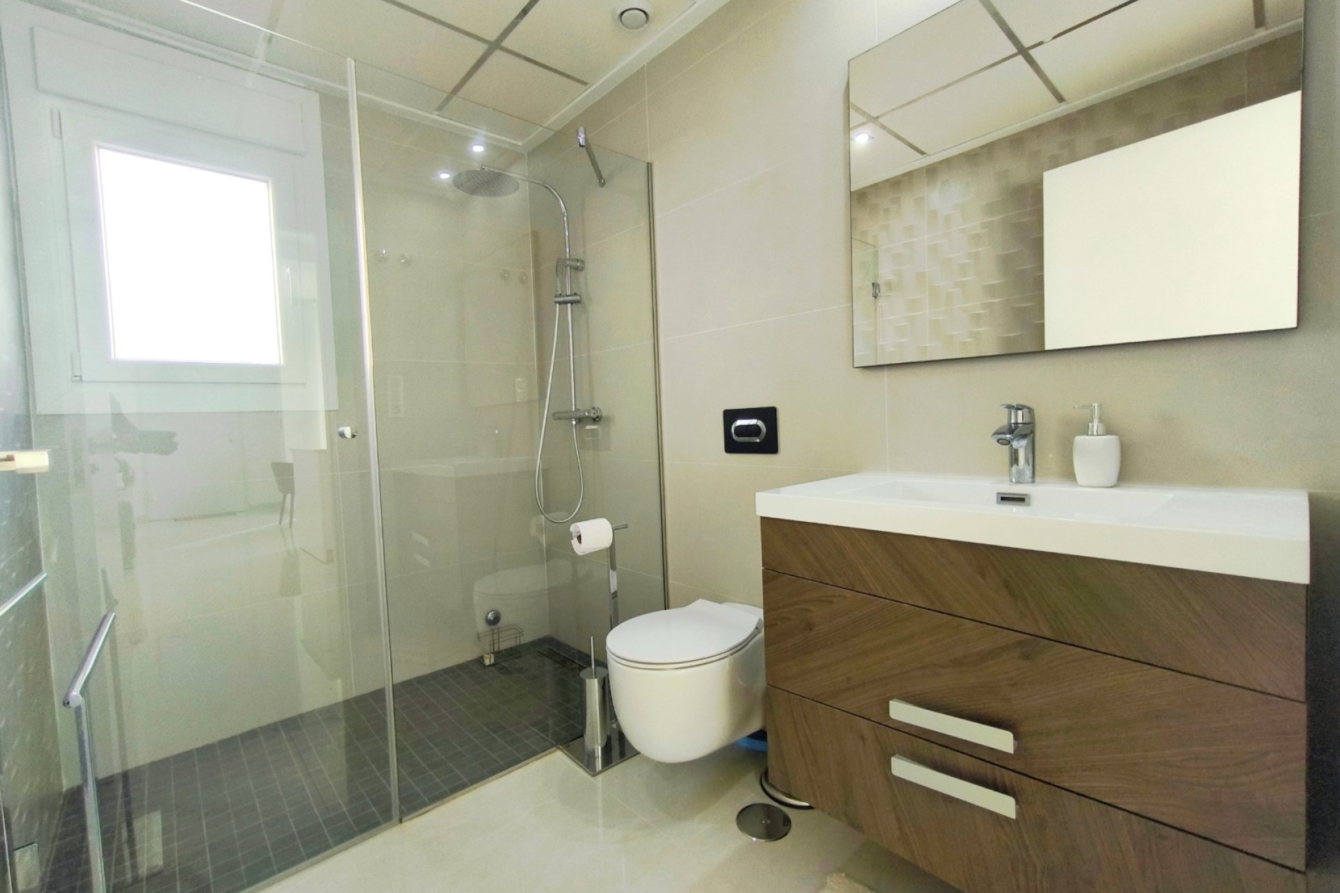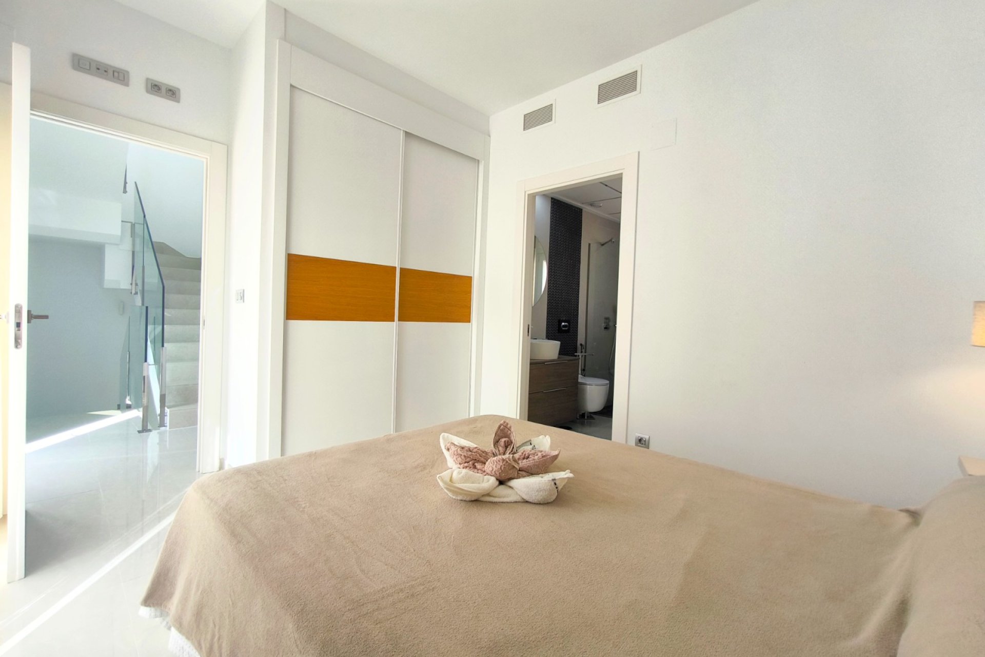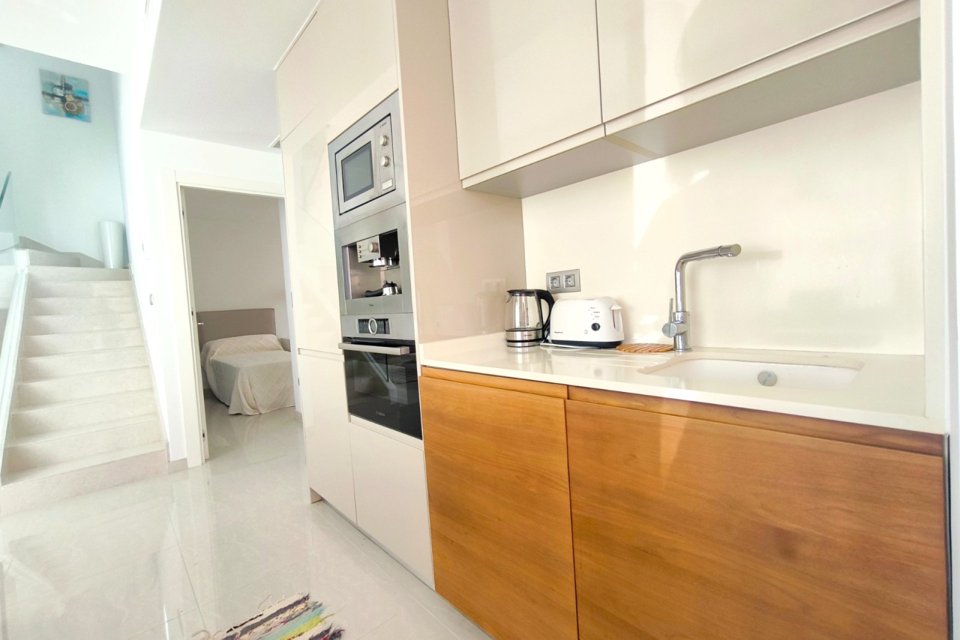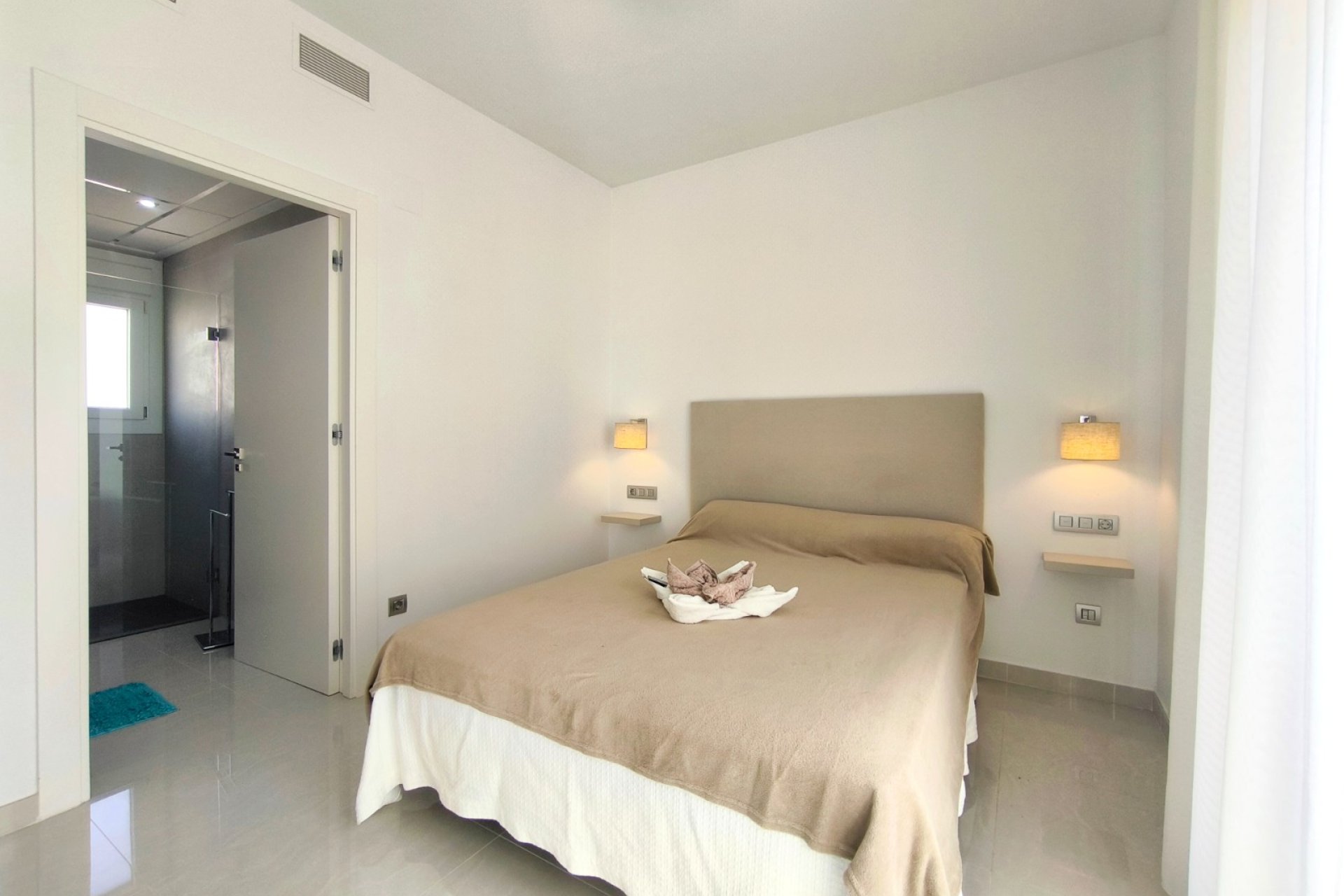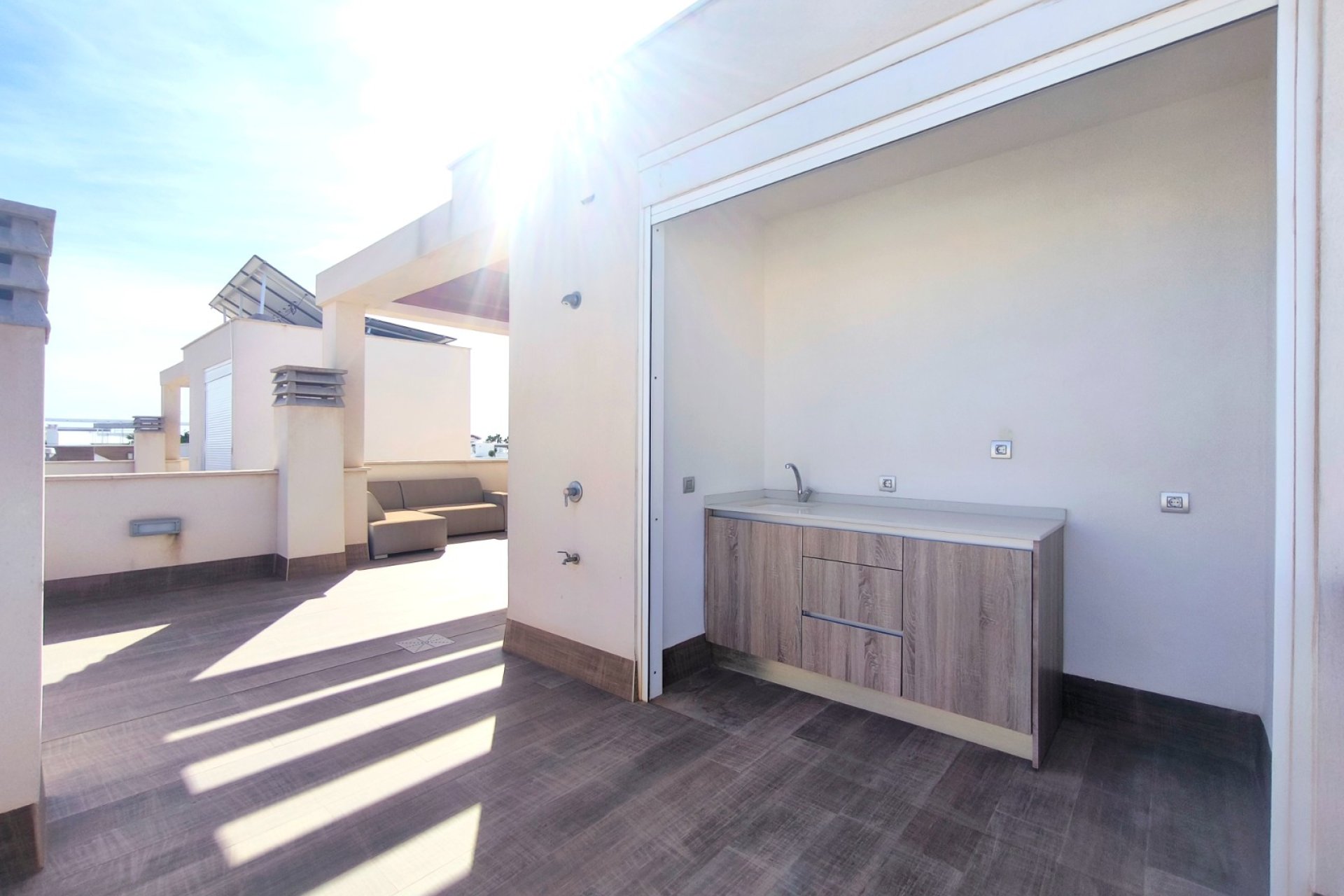 Vivir en Rojales es disfrutar de uno de los entornos más privilegiados de la Costa Blanca. En este acogedor municipio, rodeado de naturaleza, servicios y a solo unos minutos de las playas del Mediterráneo, se encuentra esta villa exclusiva que combina diseño, confort y un estilo de vida único. Su gran atractivo: una piscina privada de agua salada de 3,30 x 6,5 m, perfecta para cuidarse y relajarse en un entorno saludable. Ubicación privilegiada en Rojales La villa está situada en una zona tranquila y residencial de Rojales, muy cerca de la Laguna de La Mata, un paraje natural protegido que destaca por su microclima saludable y beneficioso para el bienestar. A tan solo dos minutos andando encontrarás tiendas de alimentación, locales de ocio y otros comercios que harán tu día a día más cómodo. Además, las playas del Mediterráneo se encuentran a menos de 10 kilómetros, mientras que el campo de golf La Marquesa está muy próximo, ideal para los amantes del deporte al aire libre. Una villa diseñada para tu comodidad Distribución interior Con una superficie construida de 101 m² en una parcela de 182 m², esta villa ofrece amplitud y funcionalidad en cada rincón. Planta baja: un dormitorio, un baño completo, cocina de concepto abierto y un amplio salón comedor muy luminoso. Planta superior: dos dormitorios con baño en suite, perfectamente distribuidos para ofrecer privacidad y confort. Orientación sur: que asegura luz natural durante todo el día. Villa de estilo mediterráneo. La villa se encuentra en un estado excelente, gracias a una decoración en tonos cálidos y neutros. Cada detalle, desde los materiales hasta la elección de los acabados, transmite una sensación de armonía y exclusividad. Espacios exteriores pensados para disfrutar Piscina privada de agua salada La joya de esta propiedad es su piscina privada de 3,30 x 6,5 m con sistema de agua salada. Sus dimensiones permiten disfrutarla tanto para refrescarse como para nadar y pasar inolvidables momentos en familia. El agua salada no solo aporta un baño más natural y agradable, sino que también es buena para la piel, más respetuosa con el cabello y requiere menos productos químicos que una piscina convencional. Un valor añadido que convierte esta villa en un verdadero oasis de bienestar. Además, existe la posibilidad de instalar un jacuzzi junto a la piscina, creando un espacio de relax con un toque exclusivo. Solárium con torreón moderno Un elegante torreón moderno da acceso al solárium privado, un espacio único para tomar el sol, relajarse o disfrutar de las tardes mediterráneas con vistas despejadas. Terraza y porche privado En la entrada, una terraza abierta con pequeño porche ofrece espacio suficiente para estacionar un vehículo. Todo ello dentro de un residencial cerrado, que aporta seguridad y tranquilidad. El hogar perfecto en la Costa Blanca Esta villa en Rojales lo tiene todo: diseño moderno, ubicación estratégica, un entorno saludable junto a la Laguna de La Mata y, como protagonista, una piscina privada de agua salada de 3,30 x 6,5 m que marca la diferencia. Una oportunidad única para quienes buscan un hogar donde vivir todo el año, disfrutar de largas estancias o tener un refugio de relax en la Costa Blanca. ¿Quieres conocer más detalles o programar una visita a esta villa en Rojales? Contáctanos hoy mismo y descubre tu nuevo hogar con piscina privada de agua salada.