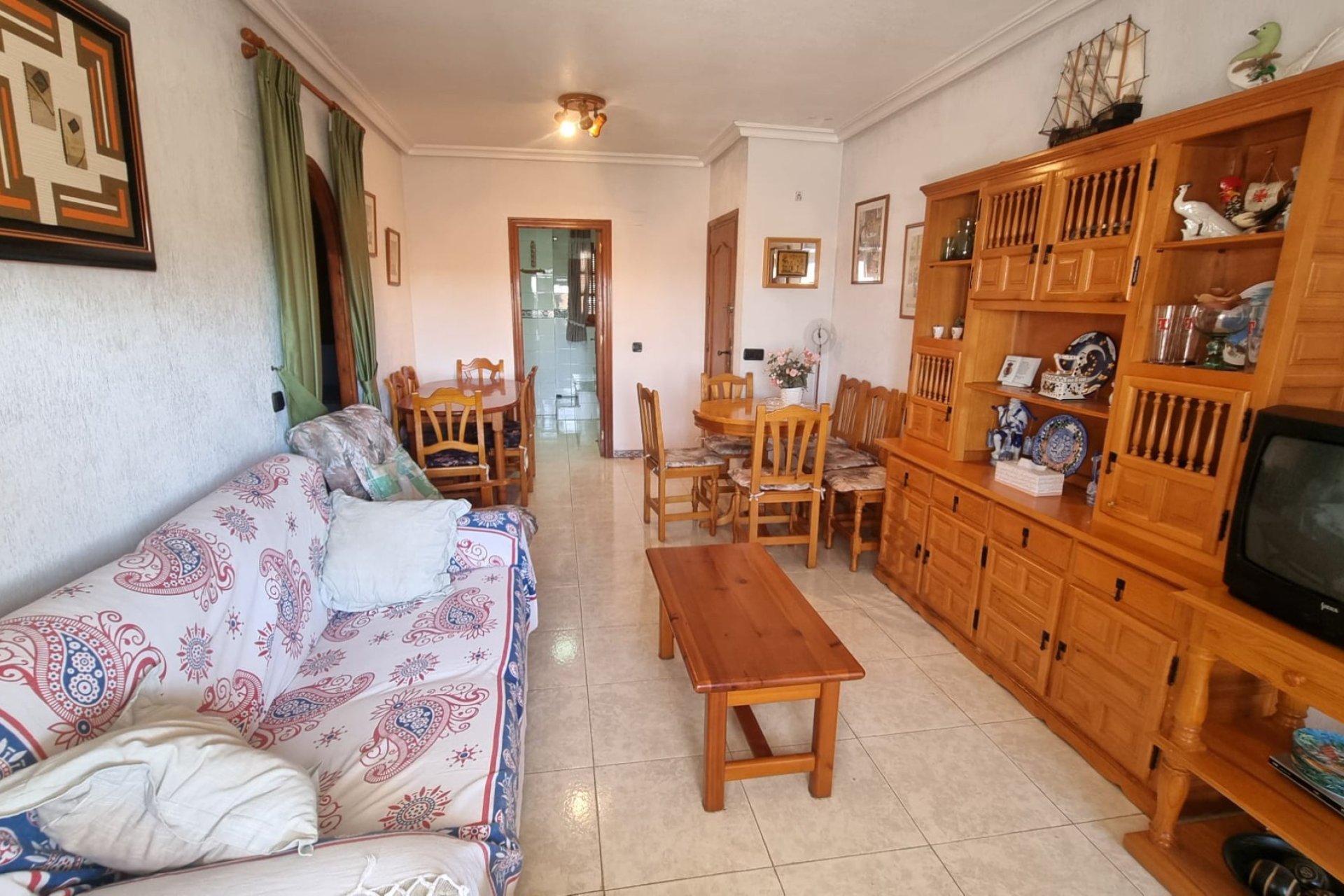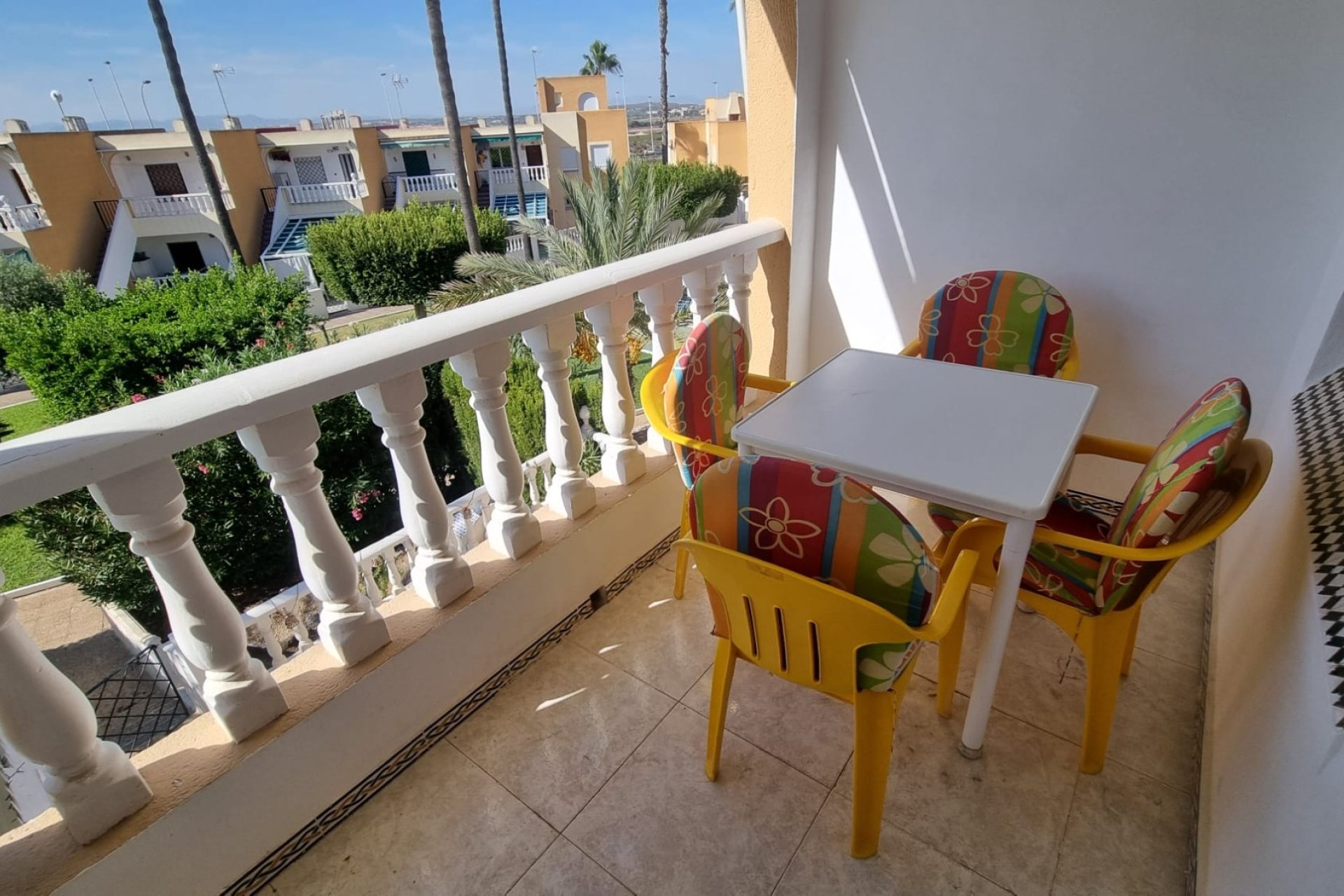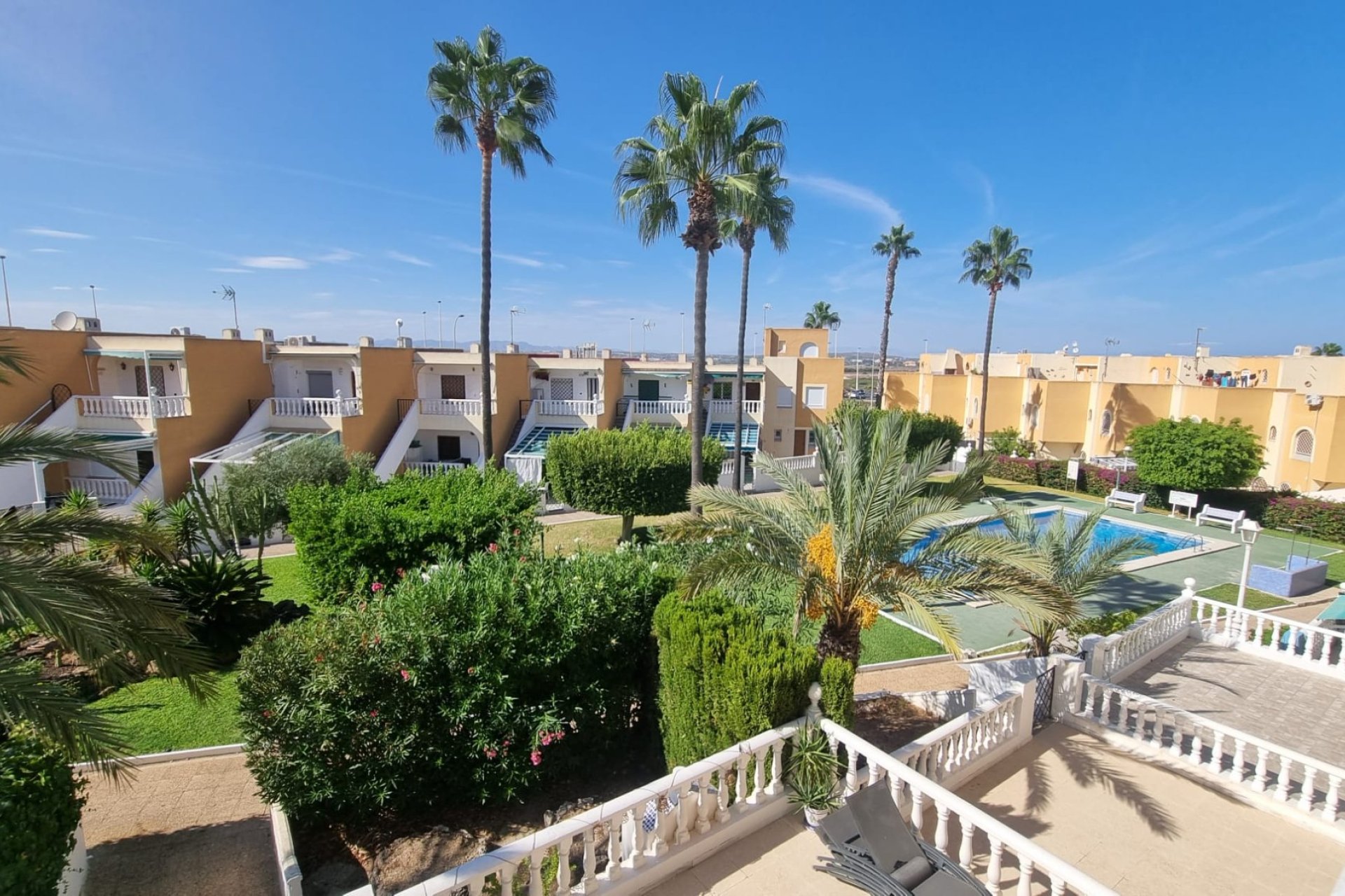 Una vivienda lista para disfrutar en la Costa Blanca Este bungalow en planta alta se encuentra en la calle Cibeles, en la zona de Torreblanca (Torrevieja), una de las áreas residenciales más demandadas por su cercanía al mar, servicios, ocio y parques naturales. Es una opción perfecta tanto como vivienda habitual, casa de vacaciones o inversión inmobiliaria en la Costa Blanca. Distribución cómoda y práctica La vivienda cuenta con dos dormitorios, un baño completo, cocina independiente y salón comedor, ofreciendo un espacio funcional y bien aprovechado. Se entrega amueblada y equipada, lista para entrar a vivir o empezar a rentabilizar desde el primer día. Espacios exteriores que marcan la diferencia El bungalow dispone de una terraza de 7 m² con vistas a la piscina y a los jardines comunitarios, ideal para disfrutar del clima mediterráneo en cualquier época del año. Su mayor atractivo es, sin duda, el solárium privado de 45 m², un espacio único para tomar el sol, celebrar reuniones familiares o simplemente relajarse al aire libre. Residencial con piscinas y pista de tenis El inmueble pertenece a un residencial privado en Torreblanca que ofrece dos piscinas comunitarias, pista de tenis y zonas ajardinadas, lo que garantiza diversión, deporte y tranquilidad para toda la familia. Extras que aportan valor Además de sus amplias zonas exteriores, este bungalow incluye un gran trastero para mejorar la capacidad de almacenaje y dos plazas de aparcamiento, una de ellas pensada para coche y otra perfecta para moto o quad. Ubicación estratégica en Torrevieja Situado en Torreblanca, este bungalow combina lo mejor de vivir en una zona residencial tranquila con la cercanía a las playas de Torrevieja, servicios, comercios, ocio y parques naturales. El entorno es ideal para quienes buscan calidad de vida, contacto con la naturaleza y, al mismo tiempo, una buena comunicación con el centro de la ciudad. Una oportunidad en la Costa Blanca Con todas estas características, este bungalow en venta en Torreblanca, Torrevieja representa una oportunidad única tanto para familias que desean una segunda residencia cerca del mar como para quienes buscan una inversión segura y rentable en la Costa Blanca. ¿Quieres más información sobre este bungalow en Torreblanca, Torrevieja? Contáctanos y te enviaremos planos, fotos adicionales o agendaremos una visita para descubrir en persona esta vivienda.