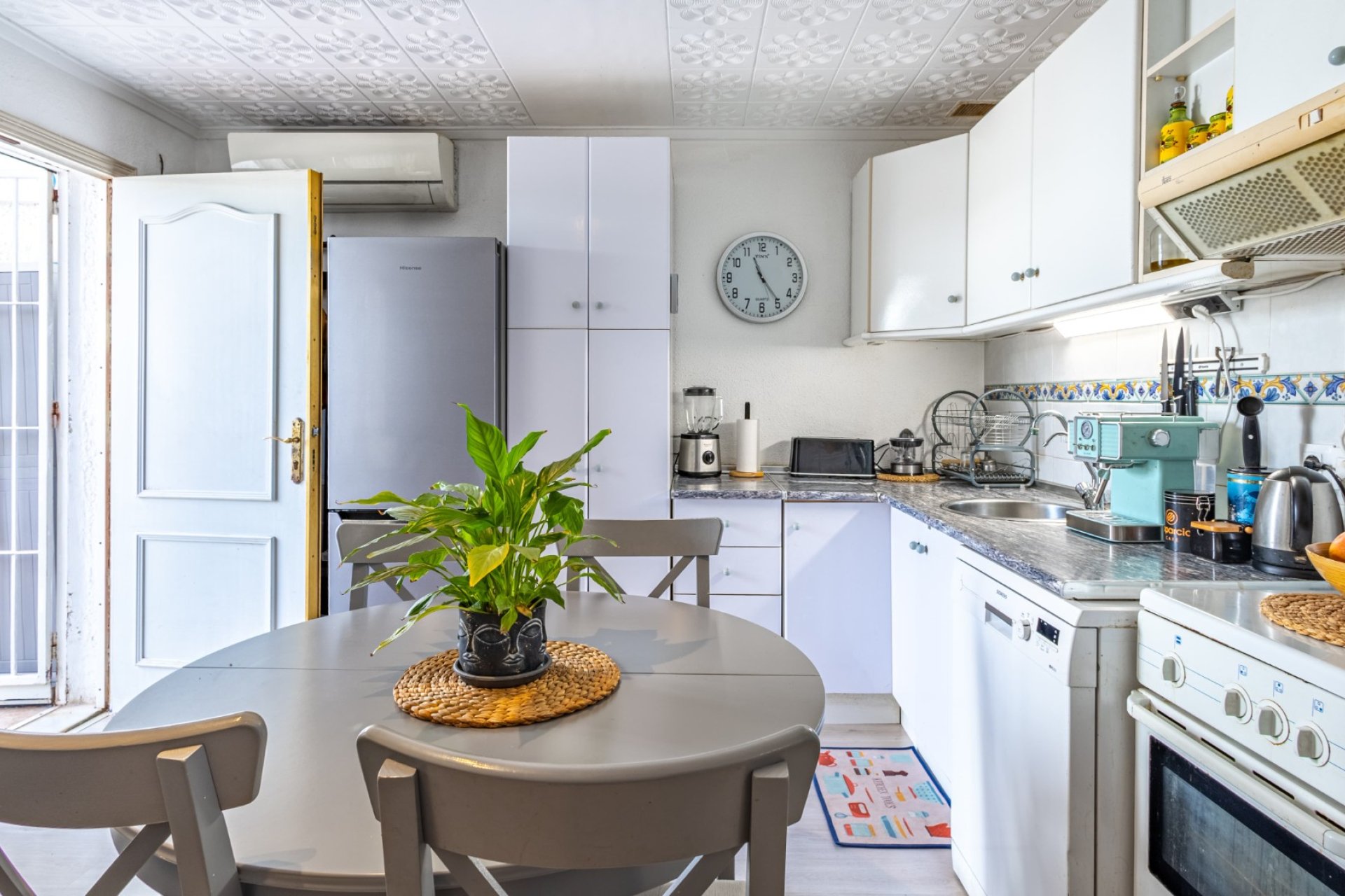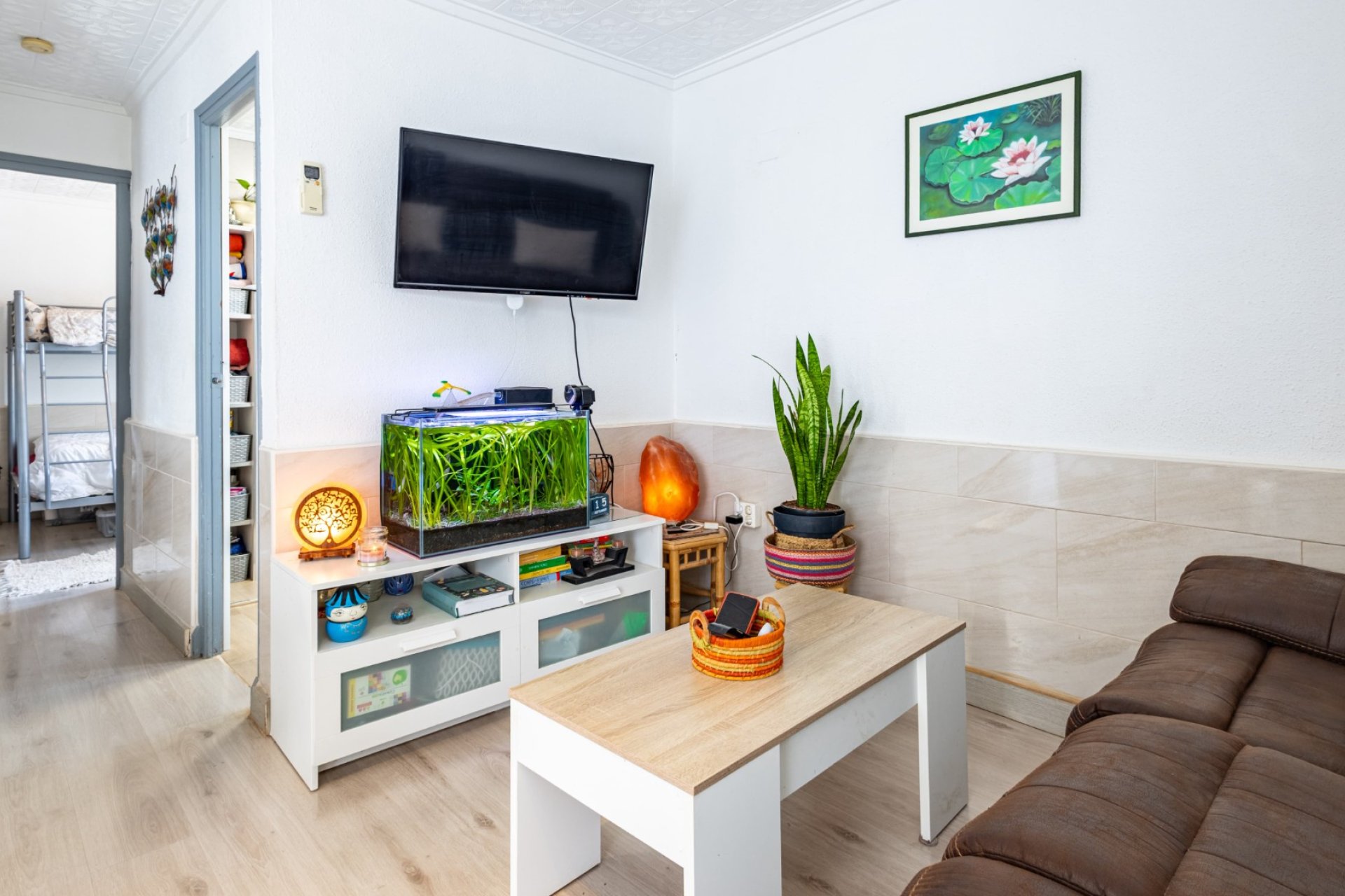 Vivienda práctica y funcional en una zona residencial tranquila Descubre este bungalow en planta baja en Torrevieja, completamente reformado, amueblado y equipado, listo para entrar a vivir. Una vivienda cómoda, práctica y diseñada para aprovechar al máximo cada metro disponible, ideal como residencia habitual o como inversión en la Costa Blanca. Distribución bien aprovechada La vivienda cuenta con 2 dormitorios, un baño moderno con plato de ducha, un distribuidor que conecta las estancias y una cocina francesa, un tipo de diseño que permite optimizar los espacios y mejorar la funcionalidad del conjunto. Gracias a esta distribución, cada rincón está pensado para ofrecer comodidad, orden y fluidez en el uso diario. Zonas exteriores que amplían el confort En la parte delantera encontramos una terraza-jardín de aproximadamente 30 m², un espacio exterior muy versátil que puede destinarse a distintos usos: zona verde o vegetal, área de descanso al aire libre, espacio de almacenamiento o rincón para disfrutar del sol mediterráneo. En la parte trasera dispone además de un patio privado, perfecto para lavandería, trastero o zona de trabajo, que permite sacar el máximo partido posible a la vivienda y mantener una buena ventilación cruzada. Orientación y privacidad La propiedad está orientada al oeste, lo que garantiza una excelente entrada de luz natural por la tarde y unas agradables temperaturas durante todo el año. Otro punto destacable es que no tiene vecino arriba, lo que proporciona una mayor privacidad y tranquilidad que pocas viviendas de este tipo ofrecen. Entorno residencial y natural Ubicado en una zona residencial de Torrevieja, el entorno combina la calma de una comunidad estable con la cercanía a todos los servicios esenciales. A muy poca distancia se encuentra la Laguna Salada de Torrevieja, así como la emblemática Laguna Rosa, espacios naturales de gran interés turístico, ecológico y fotográfico, perfectos para pasear o practicar actividades al aire libre. Listo para entrar a vivir Este bungalow se entrega amueblado y equipado, sin necesidad de realizar reformas. Es una oportunidad ideal para quienes buscan una vivienda cómoda, con encanto y en excelente estado, dentro de una de las zonas más demandadas de Torrevieja. ¿Te gustaría visitarlo? Contáctanos hoy mismo para recibir más información o concertar una visita personalizada.