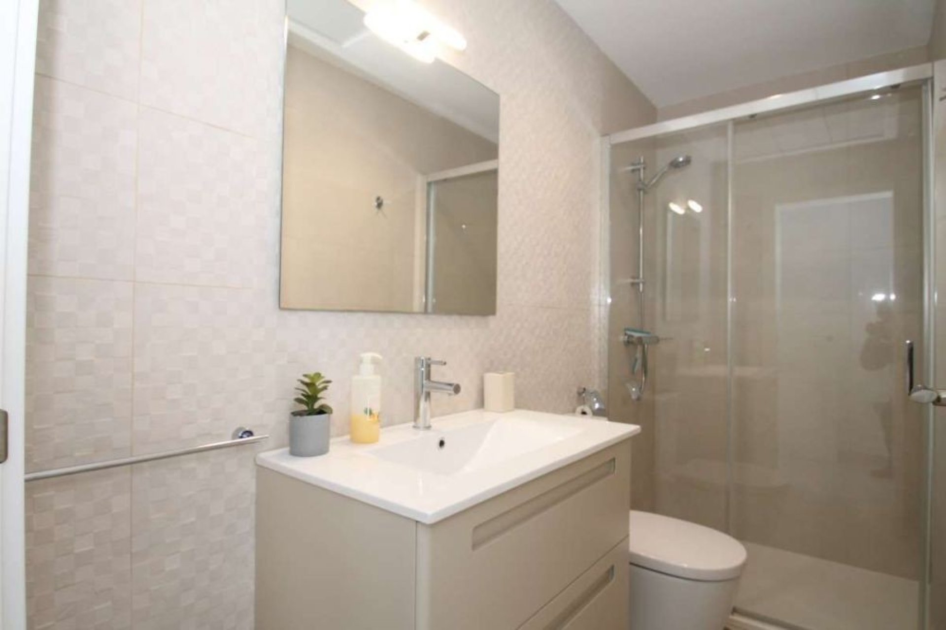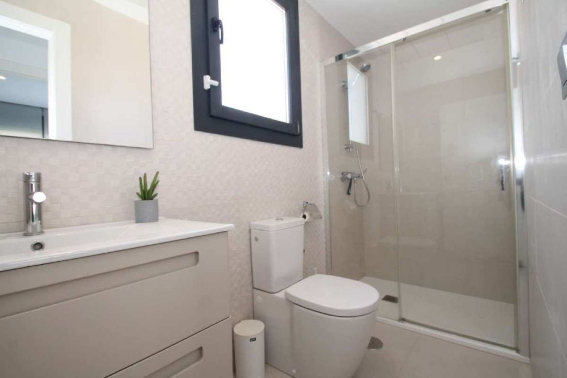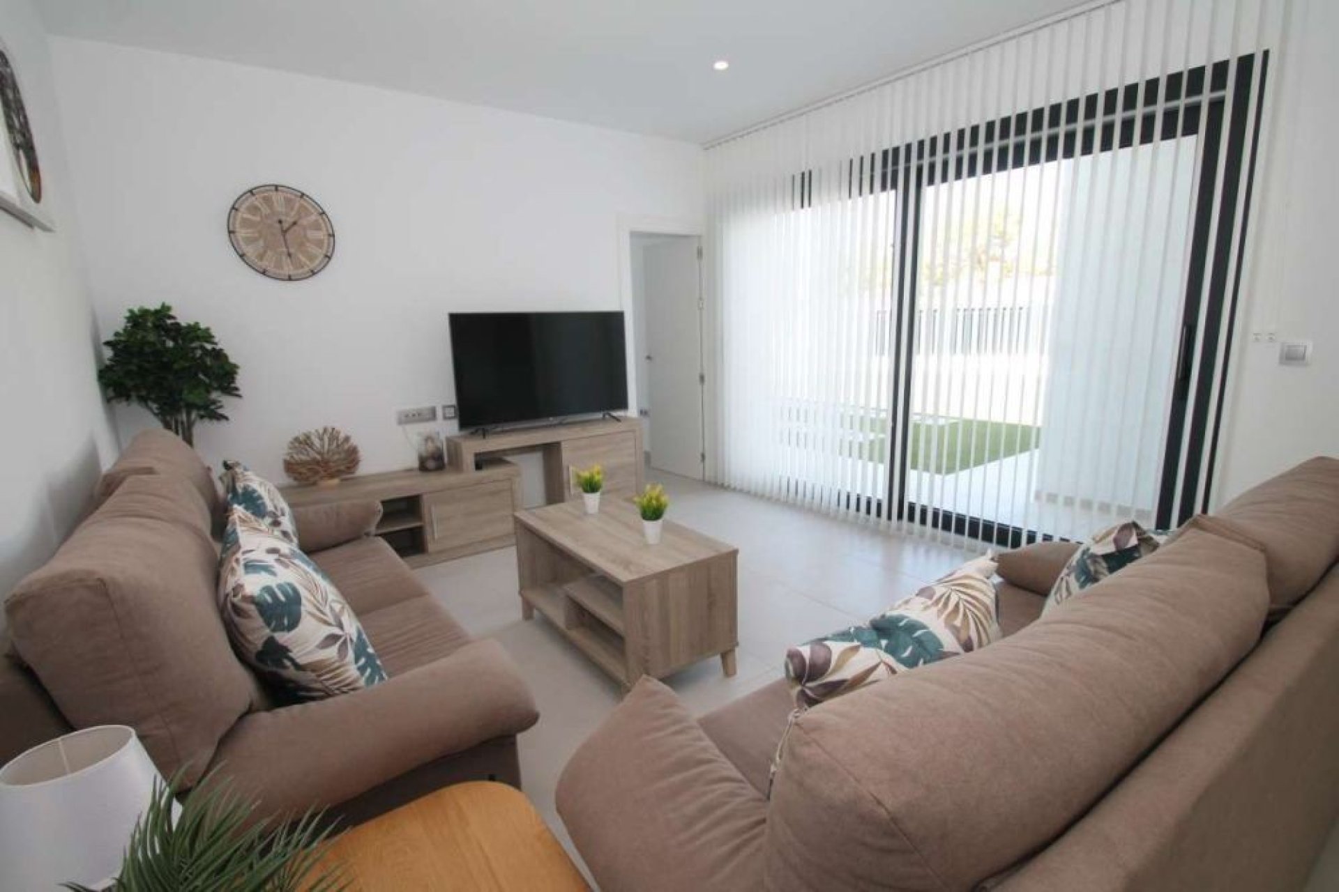 Chalet moderno en venta en Lo Romero Golf, Pilar de la Horadada, con una superficie construida de 81 m² sobre una parcela privada de 249 m². La vivienda cuenta con tres dormitorios, tres baños completos, trastero y jardín, todo distribuido en una sola planta. Se encuentra dentro de un residencial cerrado con vigilancia 24 horas, ofreciendo máxima seguridad y tranquilidad. Está en excelente estado de conservación y se vende totalmente amueblado, con aire acondicionado, electrodomésticos y armarios empotrados incluidos. Ideal para quienes buscan confort, privacidad y una ubicación privilegiada junto al campo de golf.