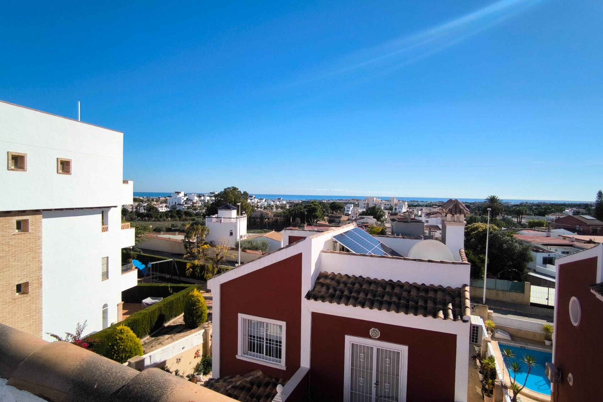 Villa independiente con piscina privada y solárium con vistas al mar en Los Dolses (Orihuela Costa). Ubicada en una de las zonas residenciales más demandadas, entre Villamartín y La Zenia, ideal para vivir todo el año, vacaciones o inversión. La vivienda se encuentra en un entorno tranquilo y consolidado, con residentes permanentes y todos los servicios cerca. A tan solo 800 metros del Centro Comercial La Rioja y a poco más de 1 km de La Zenia Boulevard, uno de los centros comerciales más grandes de la zona. Las playas de Orihuela Costa están a menos de 3 km y el campo de golf de Villamartín se sitúa a pocos minutos. 128 m² construidos, Parcela privada de 250 m², 3 dormitorios con armarios empotrados, 2 baños completos, Piscina privada, Parking dentro de la parcela, Solárium privado con vistas al mar, Terraza de 16 m², Se vende amueblada y equipada, Electrodomésticos nuevos, Aire acondicionado. La vivienda ofrece un interior luminoso y elegante, con un amplio salón-comedor que conecta directamente con la zona exterior y la piscina. La cocina está totalmente equipada y lista para entrar a vivir. El solárium privado es uno de los grandes atractivos de la propiedad: un espacio con privacidad y vistas despejadas al mar, ideal para zona chill-out, tomar el sol o disfrutar de cenas al aire libre durante todo el año. Los Dolses es una zona muy valorada por compradores nacionales e internacionales por su combinación de tranquilidad, servicios, ocio, playas y golf. Perfecta tanto como residencia habitual como segunda vivienda o inversión inmobiliaria. Solicita información aquí y te ayudamos en tu idioma.
