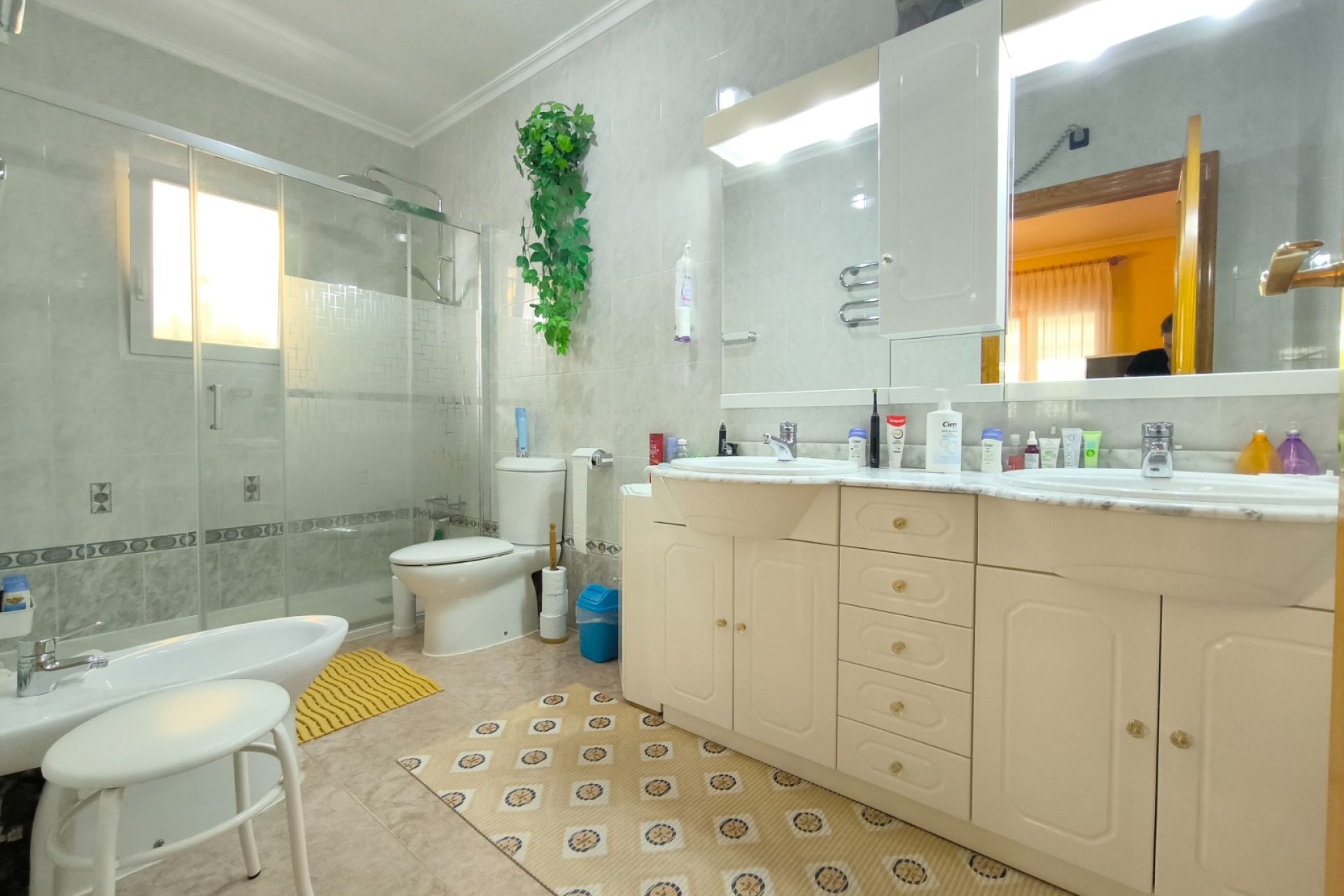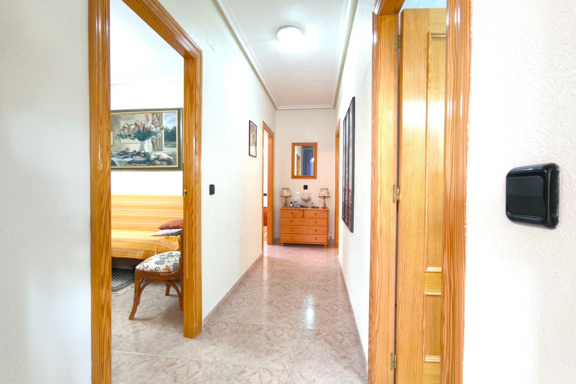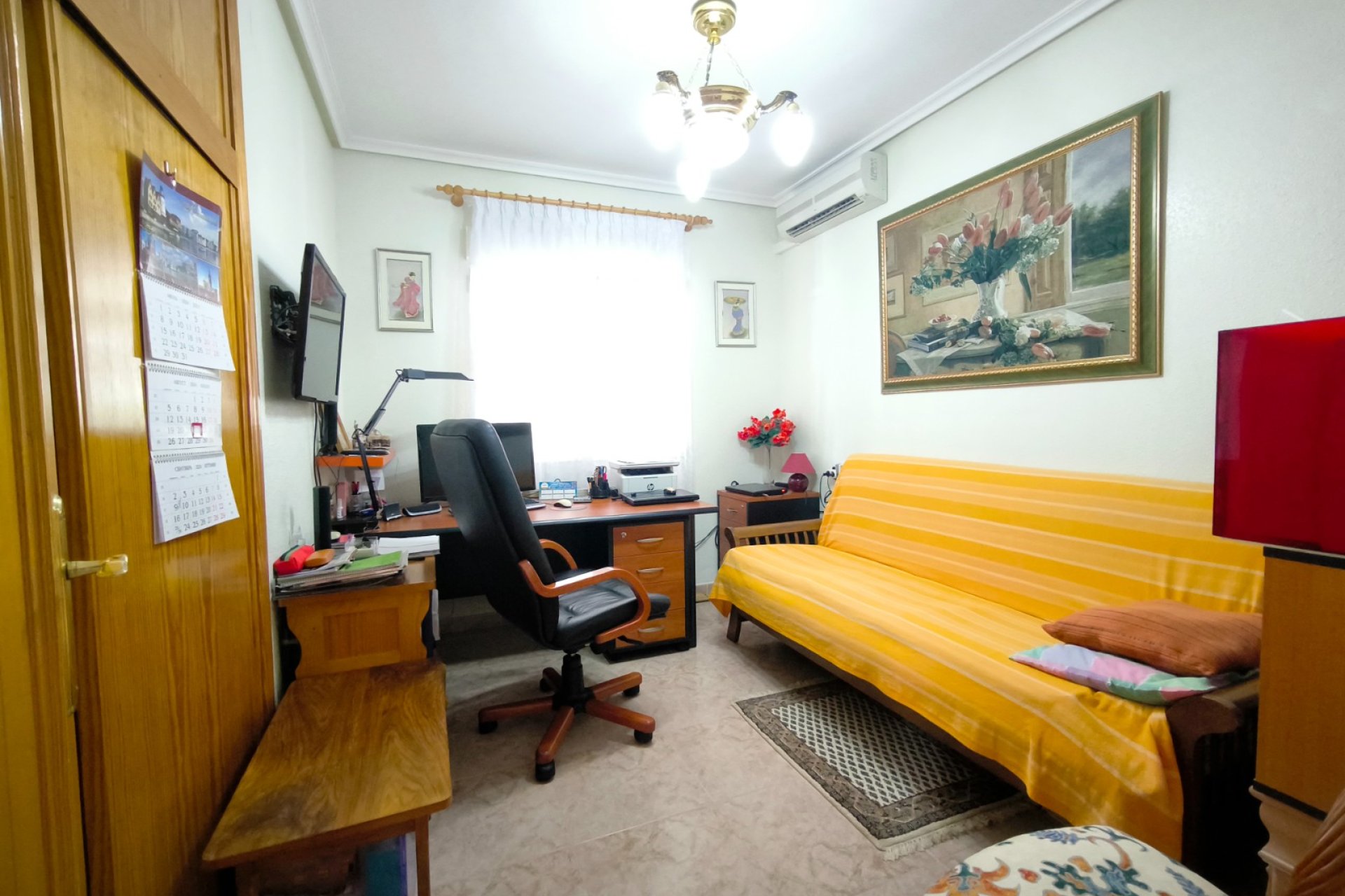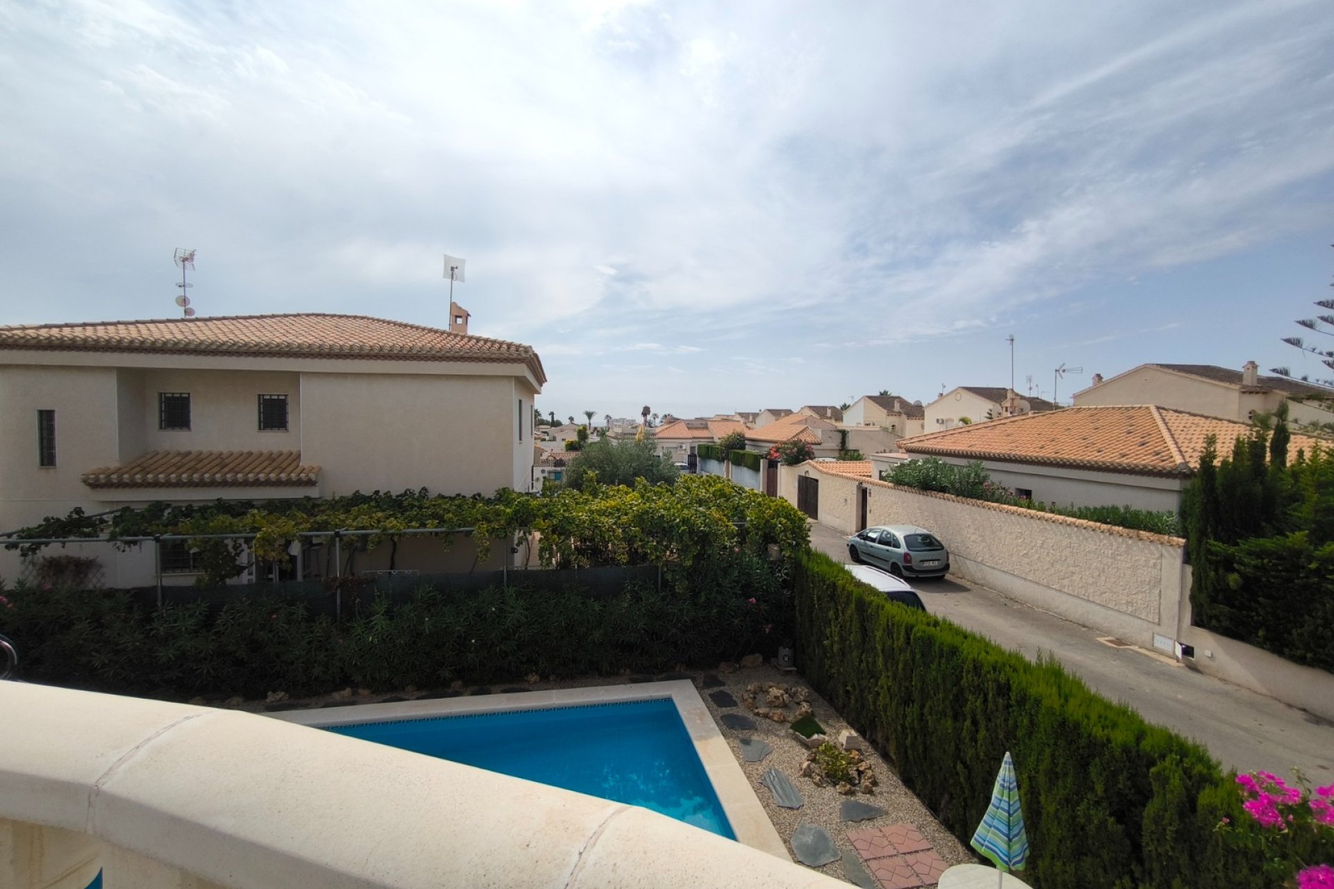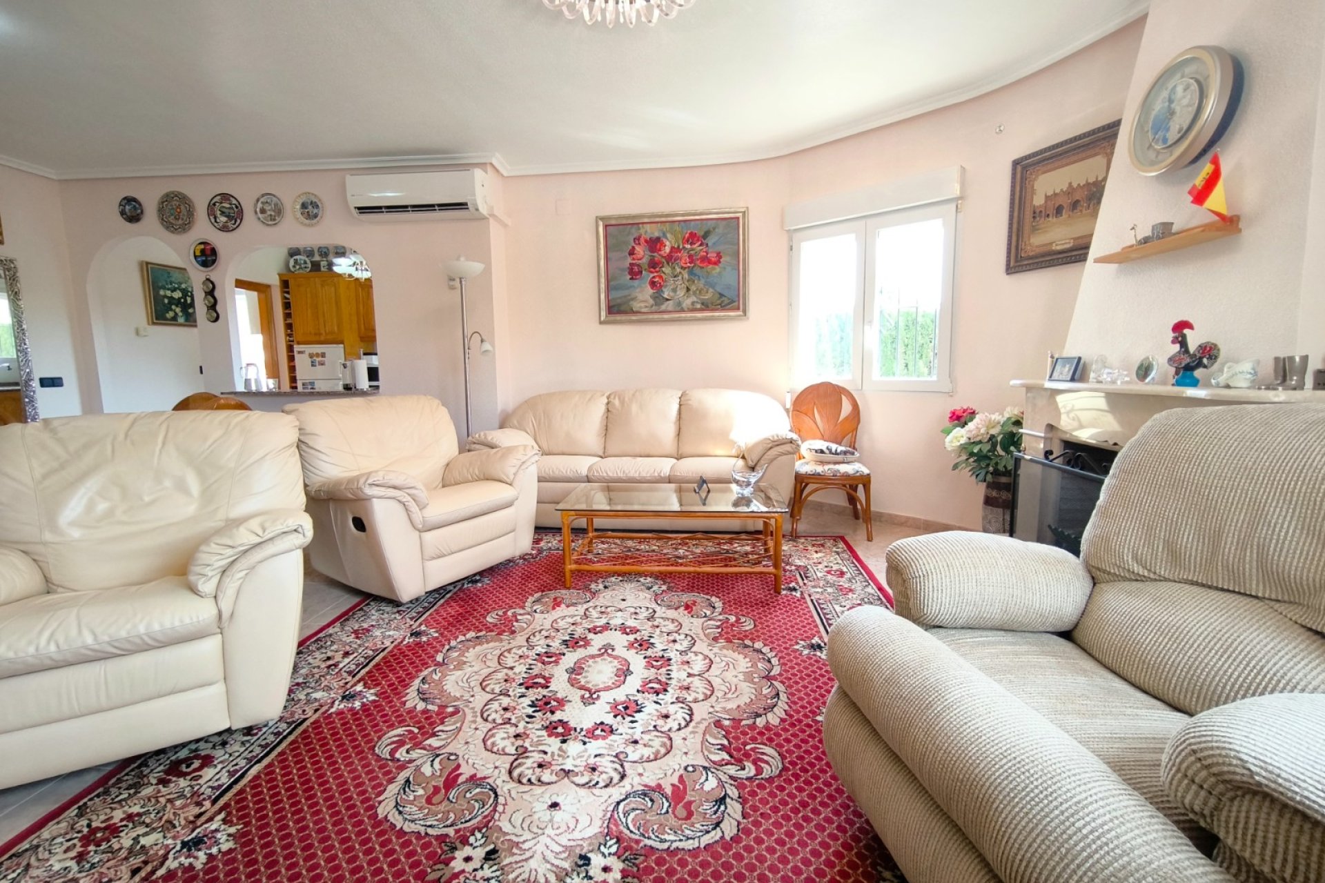 Ocasión única: a la venta Villa de una sola planta de 150 metros cuadrados, ubicada en la mejor zona de la ciudad y completamente amueblada. Dispone de 3 dormitorios y 2 baños, uno de ellos en suite, un salón comedor luminoso y de gran amplitud para no tener problemas de espacio, cocina independiente, galería, terraza acristalada transformada como un salón de invierno, un pequeño vestidor y Solarium. La chimenea en el salón comedor proporciona un punto de encuentro familiar y ofrece esa sensación de hogar que buscas. Aire acondicionado en cada dormitorio así como en el salón y en la terraza acristalada, consiguiendo así el efecto deseado en cada unos de las cinco dependencias. Suelo radiante por electricidad en toda la planta (excepto en la terraza acristalada) con un mando independiente en cada habitación/baño para sacar el máximo provecho de su funcionalidad. Gracias a sus paneles solares de 10kWh, el gasto de electricidad se reduce a un máximo de 10 euros al mes aunando así la energía sostenible con un gran ahorro económico sin perder comodidad. Ademas hay una instalacion de gas. Cuenta además con 2 trasteros con acceso desde el jardín, con mucho espacio extra para almacenaje y facilidad de colocación de armarios de fácil acceso: sótano 25 m2. Piscina climatizada 4x8, recién reformado. Alrededor de 47 m3. Con vistas al mar. Jardín con arboles frutales y sistema de auto-riego, con mucho espacio para que disfrutes de su parcela de 500 metros cuadrados. Zona de Playa Flamenca al lado del mercadillo que se celebra cada sábado y que te permitirá disfrutar del dinamismo de esta área de la localidad.