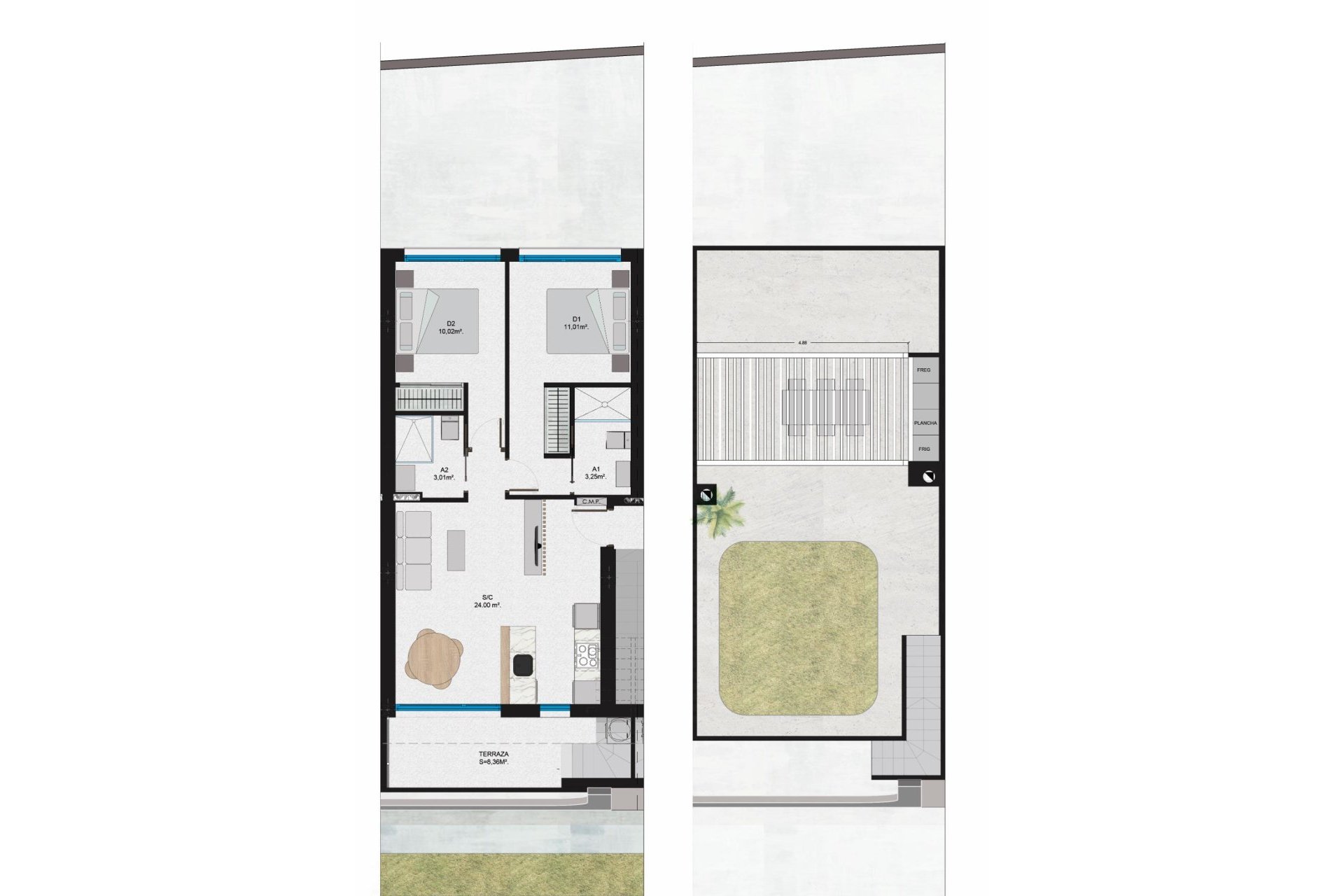 BUNGALOWS DE OBRA NUEVA EN SAN PEDRO DEL PINATAR Moderno complejo residencial de bungalows en San Pedro del Pinatar. Elija entre un modelo de planta baja con terraza delantera o ático loft con terraza delantera y gran solarium privado en la azotea. Bungalows Planta Baja: La puerta principal se abre a la amplia zona de estar con comedor situado a un lado. La cocina totalmente equipada se encuentra junto a las puertas correderas que permiten la entrada de luz natural. Al lado hay un cuarto de baño con lavabo, inodoro y ducha y 2 dormitorios de tamaño generoso - el dormitorio principal con baño en-suite. Bungalows áticos: Una escalera conduce a la zona de la planta superior con gran terraza privada de baldosas, con puerta de entrada a la propiedad. Como los modelos de la planta baja un generoso plan abierto salón / comedor con la cocina de gran tamaño - 2 dormitorios a un lado (principal con baño en-suite). Se accede al solarium privado desde la parte trasera de la cocina. Nuestras viviendas incluyen iluminación LED interior y exterior, preinstalación de aire acondicionado, cocina equipada con placa de inducción, horno, lavavajillas, frigorífico/congelador y plaza de aparcamiento. Estas nuevas viviendas disponen de un pasillo entre cada estructura, con acceso al jardín comunitario y a la gran zona de piscina de la parte delantera. Desarrollo de estilo de firma de sólo 12 hermosos bungalows - Todos disfrutando de una gran zona ajardinada comunitaria con piscina. La ubicación privilegiada de San Pedro del Pinatar en el Mar Menor y la costa mediterránea atrae a aquellos con un interés en la navegación y los deportes acuáticos, proporcionando amarres en el puerto deportivo y clubes náuticos, mientras que las playas y los baños de barro naturales atraen a aquellos que buscan sol, mar y arena. San Pedro del Pinatar tiene una comunidad establecida y ofrece una excelente gama de actividades, incluyendo piscina cubierta e instalaciones deportivas, así como un programa de actividades sociales durante todo el año por el agradable clima invernal. Los beneficios de los baños de barro, típicos de la región, o las tranquilas aguas del Mar Menor, han favorecido el crecimiento de Lo Pagán, que actualmente cuenta con todo tipo de comodidades. Además, cuenta con una excelente ubicación, a tan sólo 5 minutos del Centro Comercial Dos Mares. El aeropuerto de Murcia/Corvera se encuentra a 30 minutos y el de Alicante a una hora en coche.